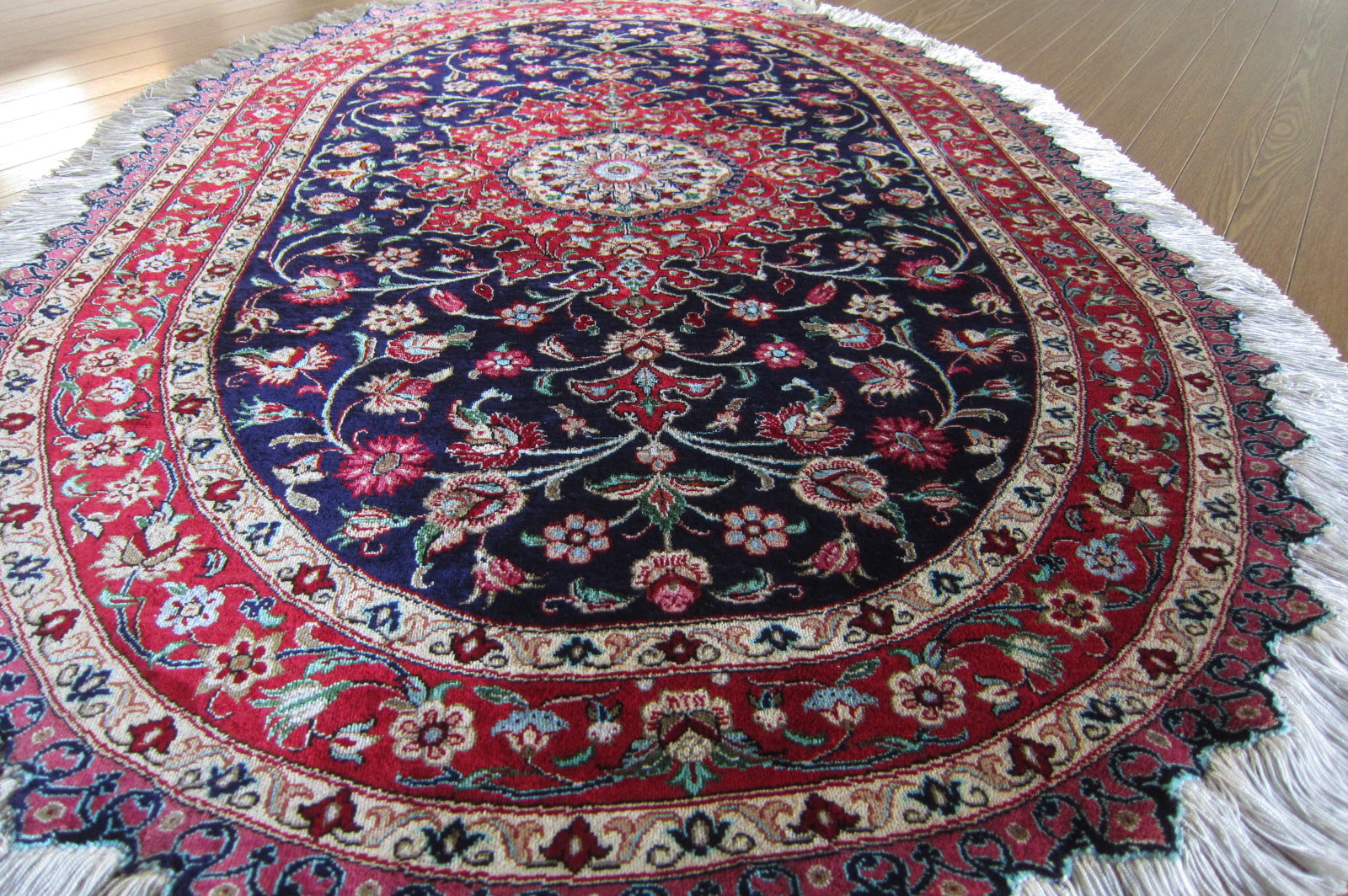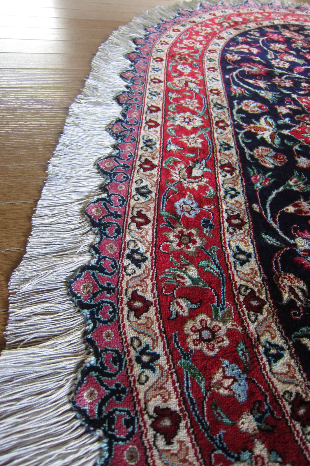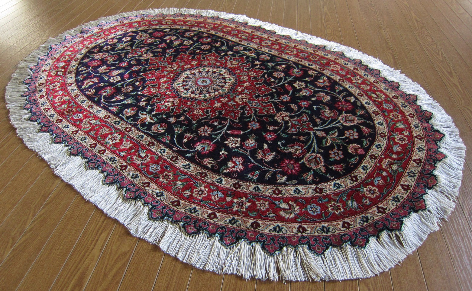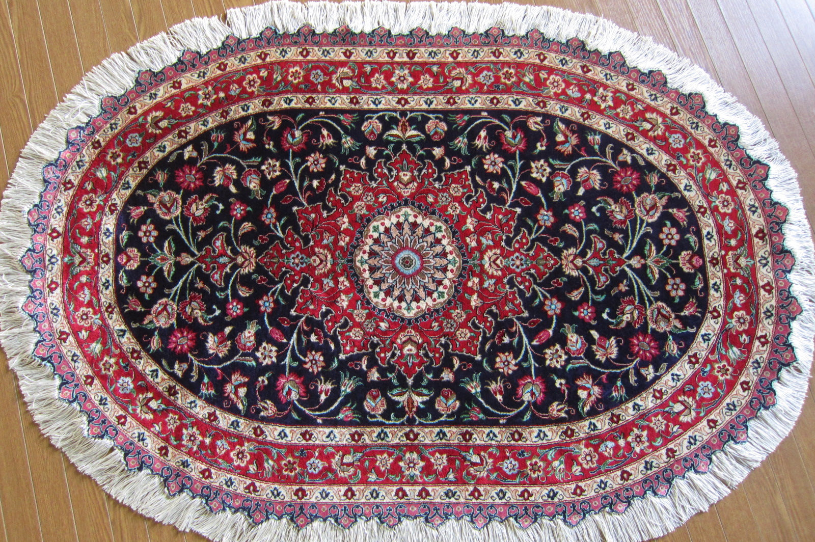 シルクの光沢が美しい、楕円形の使いやすい絨毯です。
