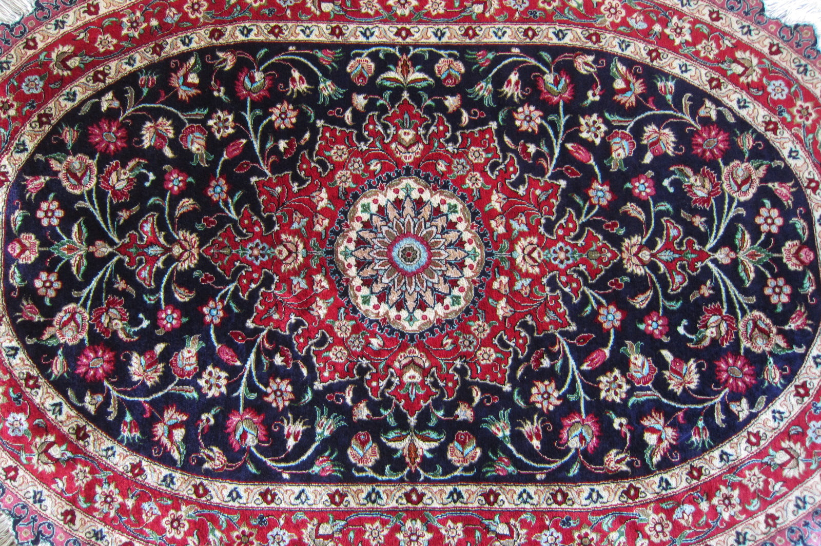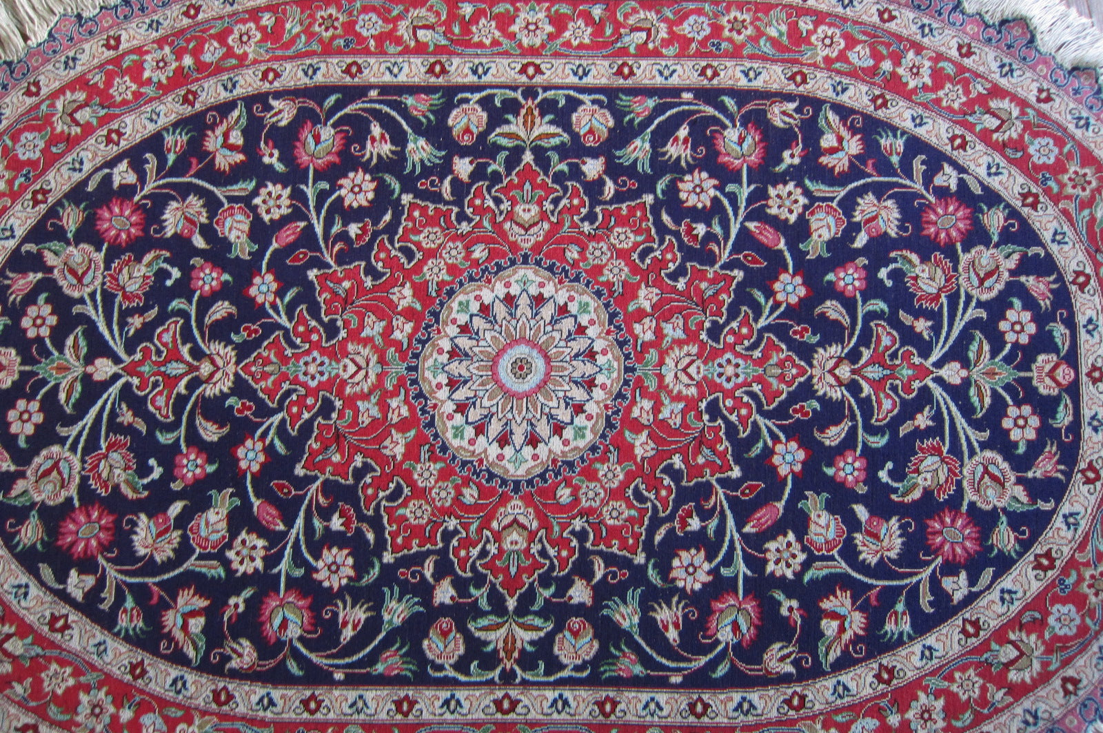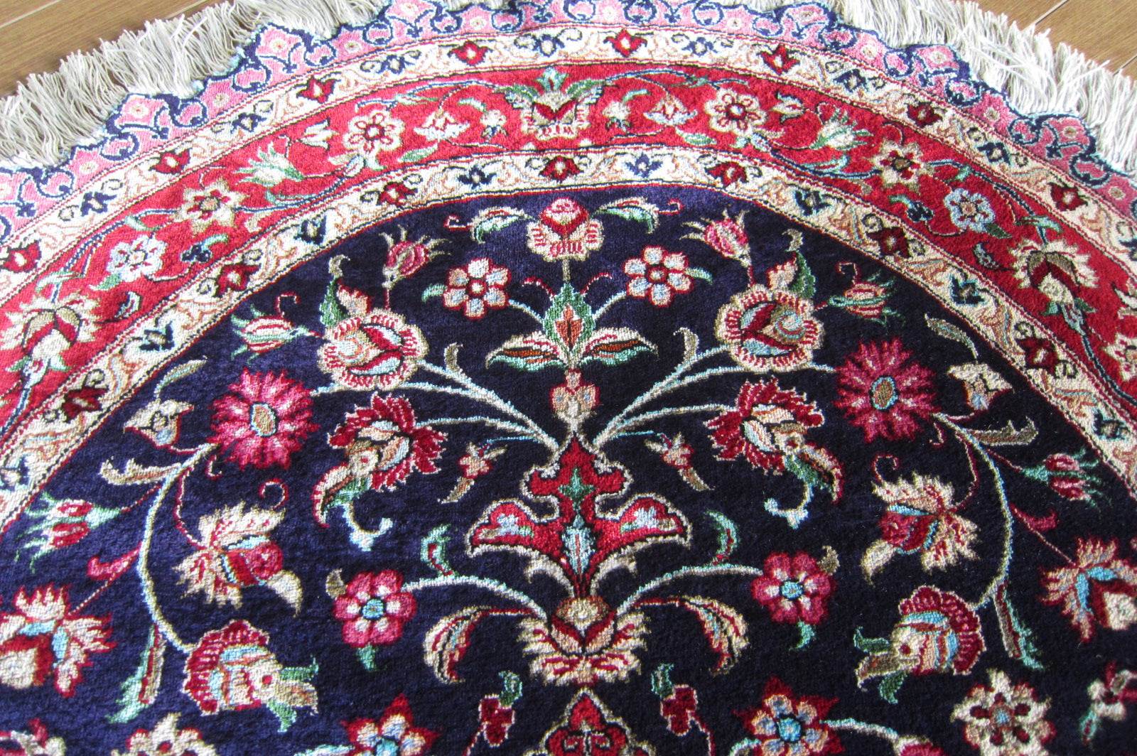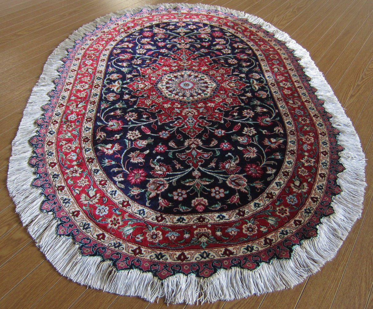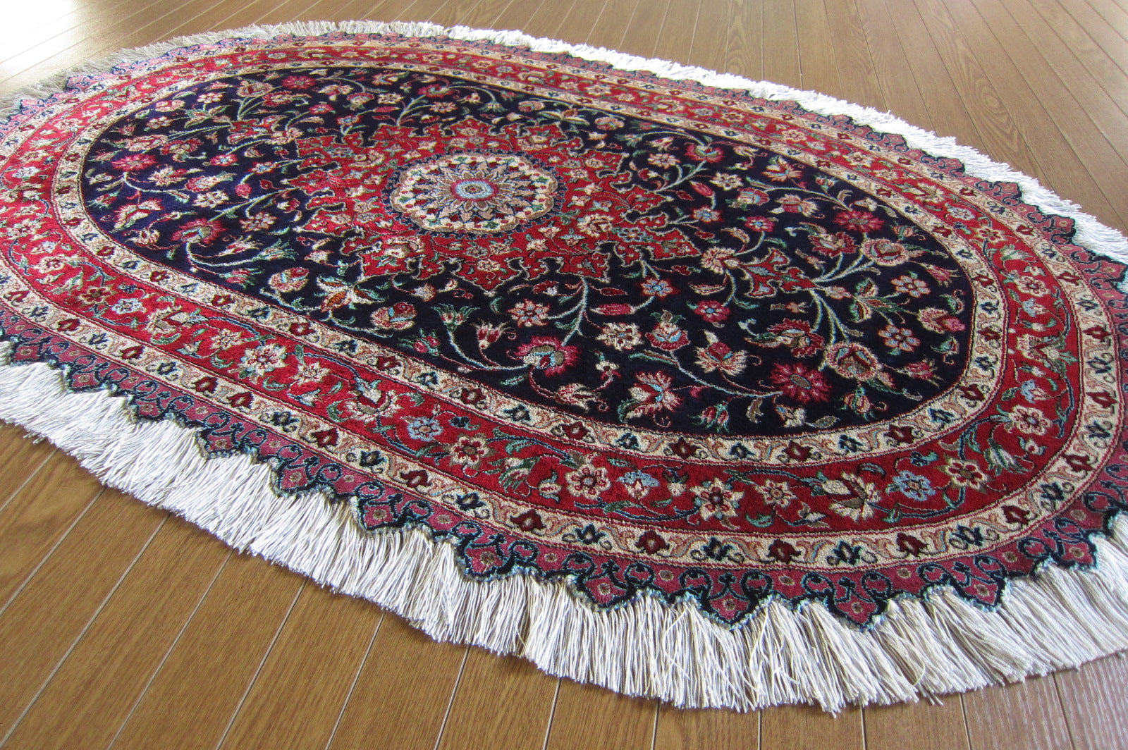 シルクの光沢が美しい、楕円形の使いやすい絨毯です。