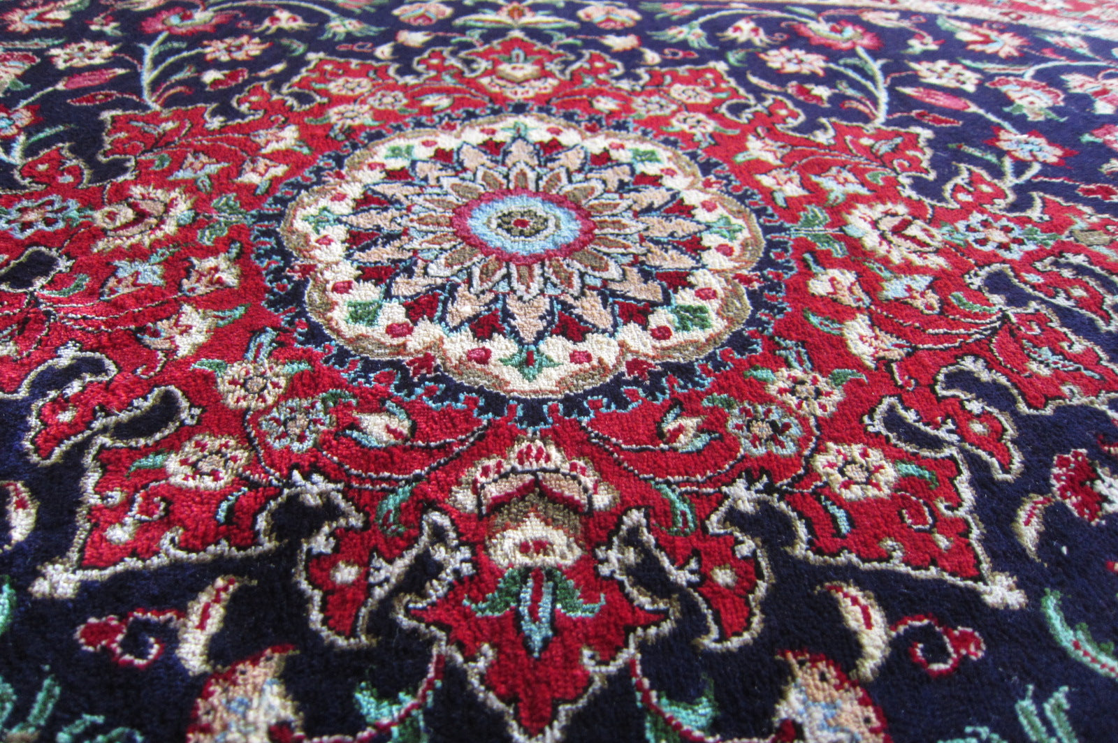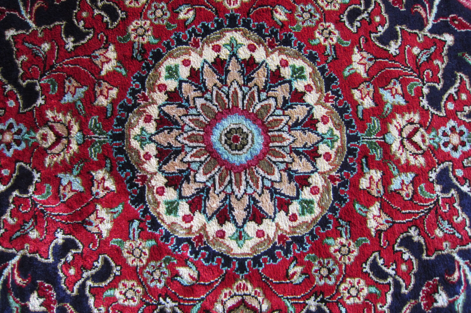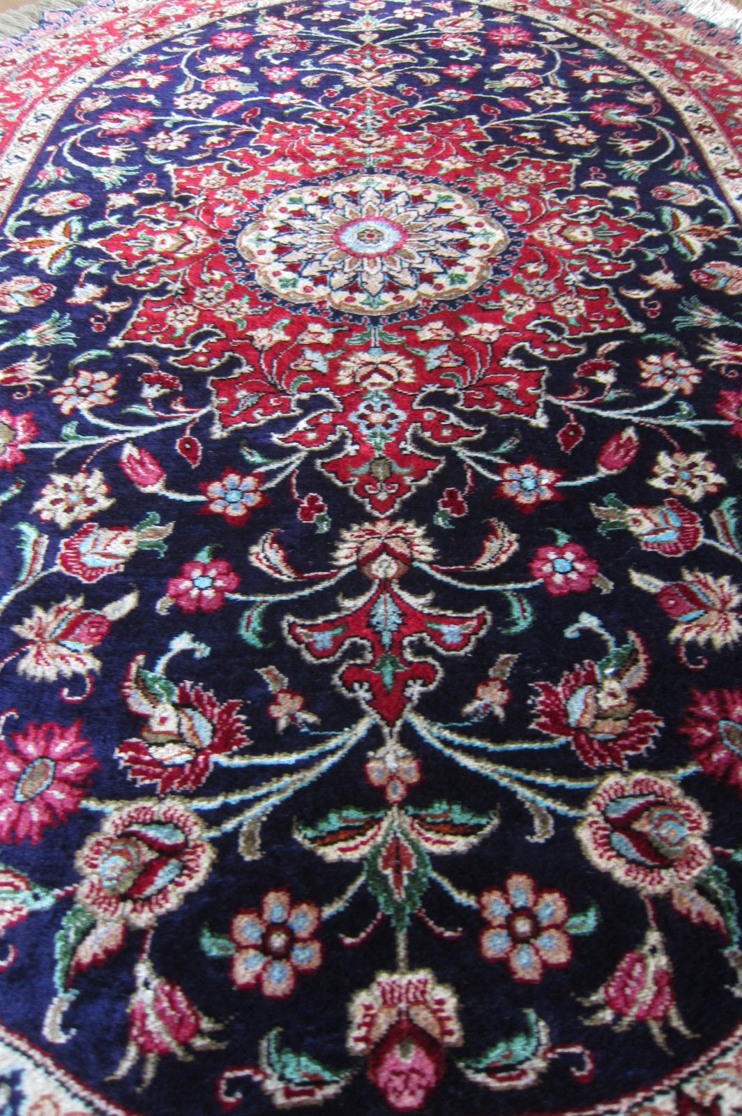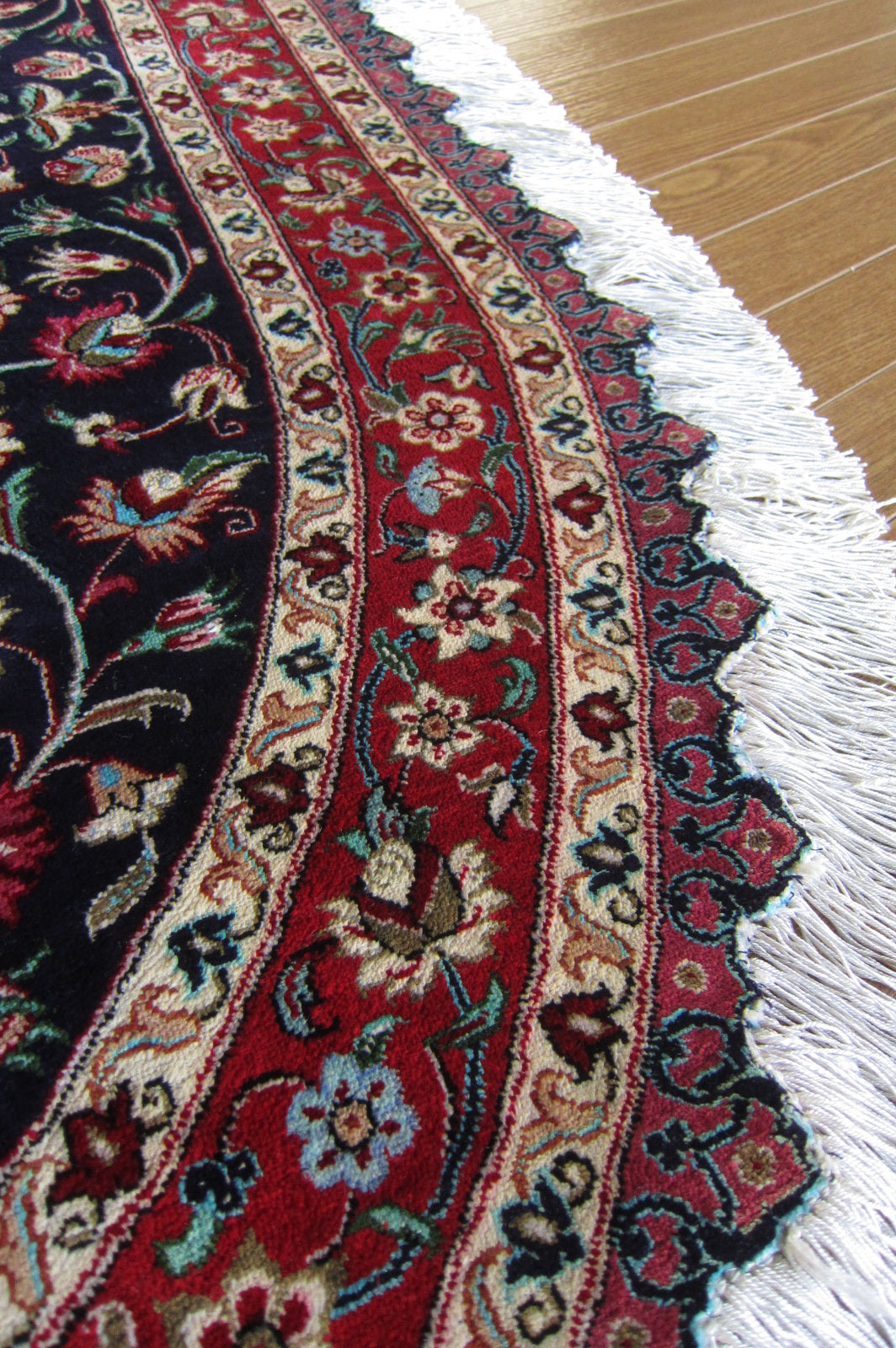 シルクの光沢が美しい、楕円形の使いやすい絨毯です。