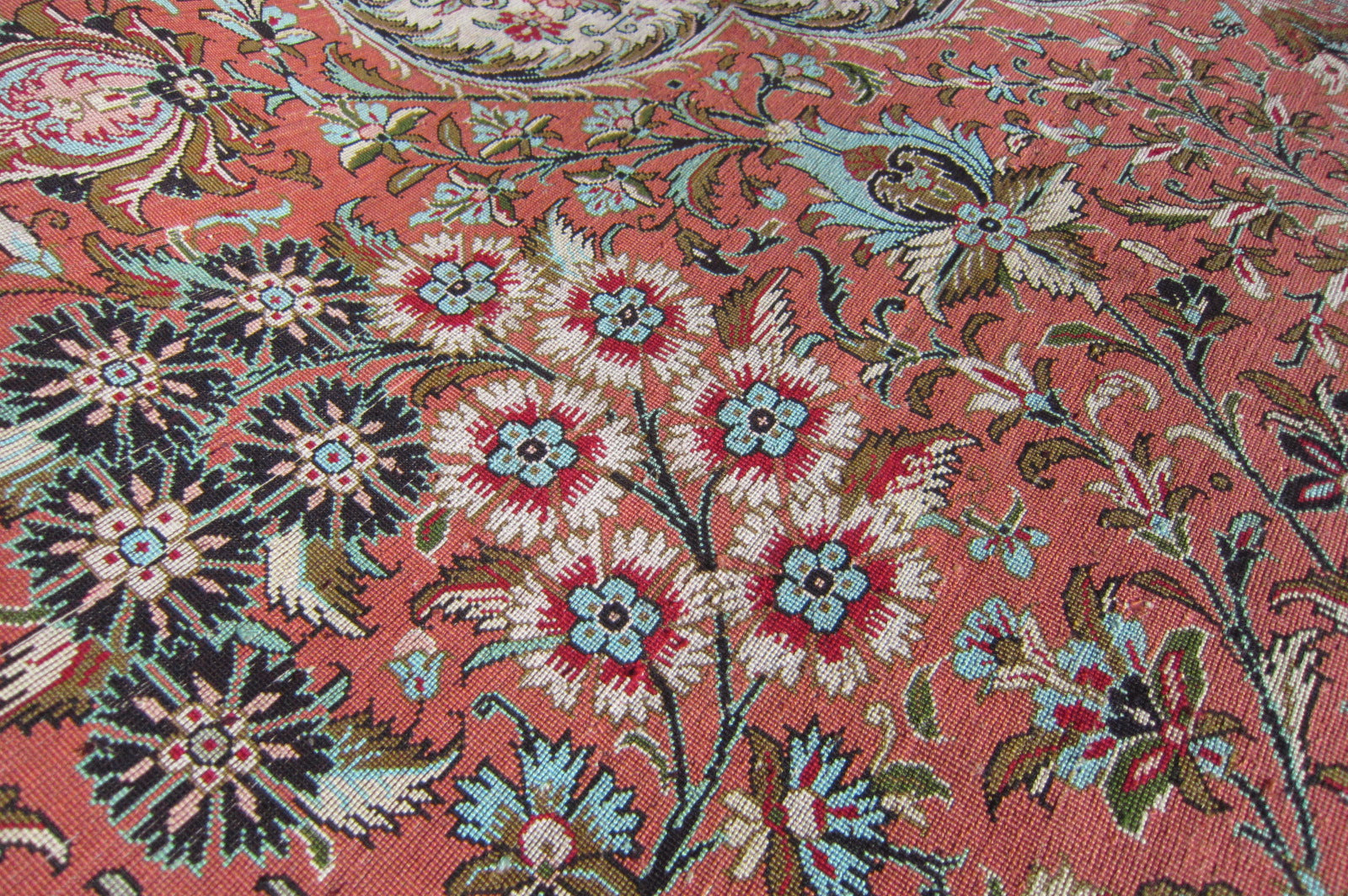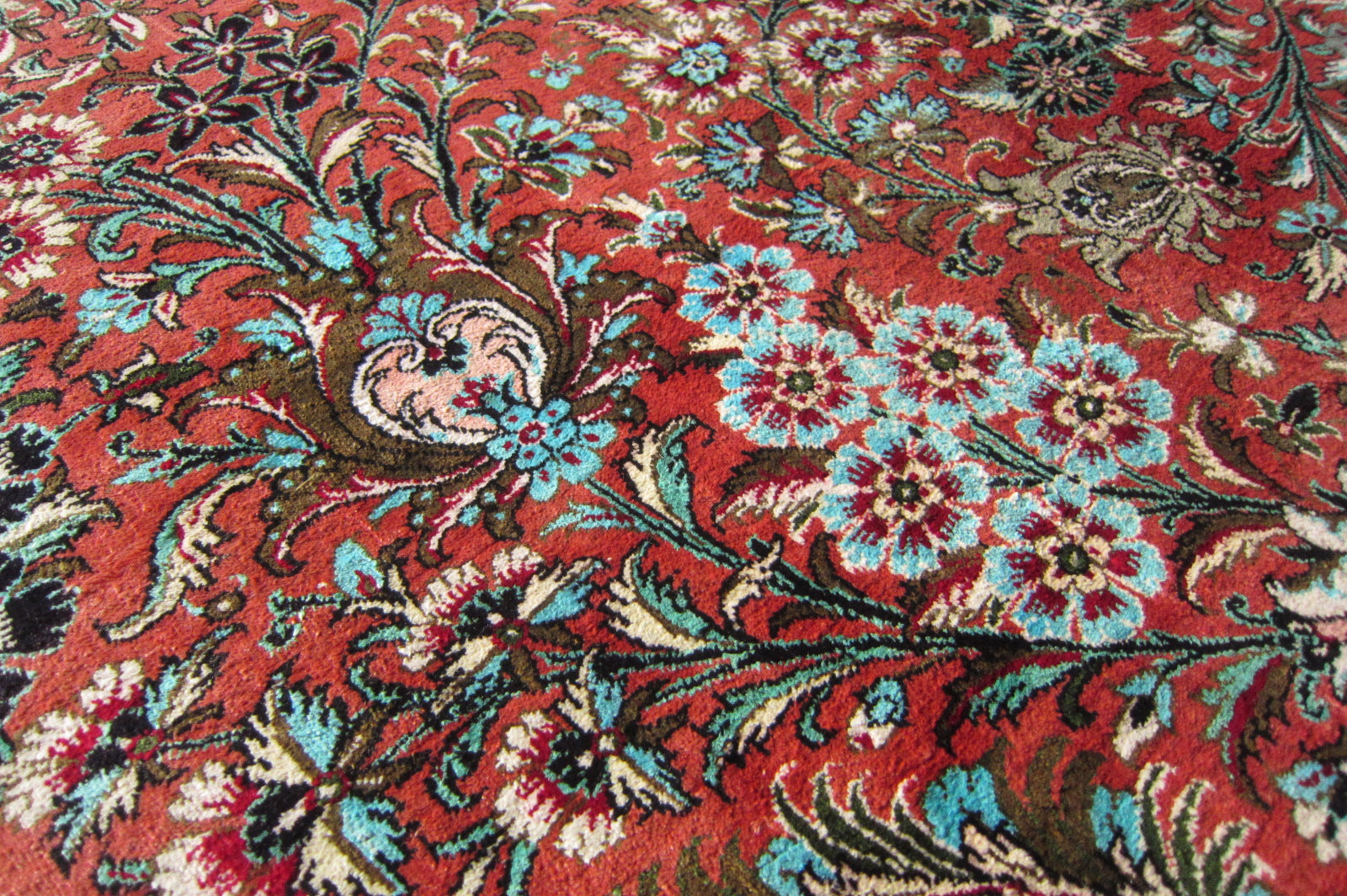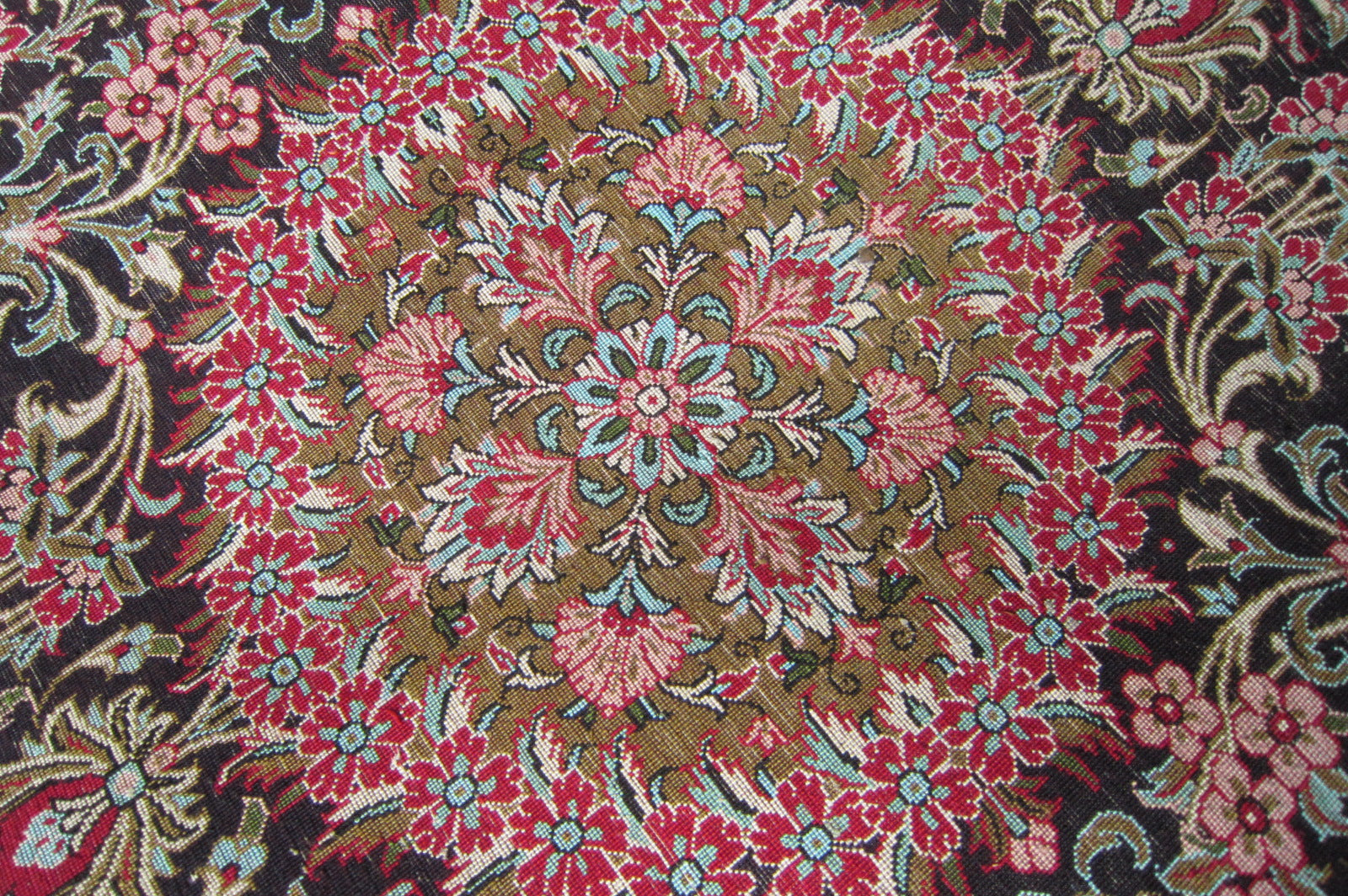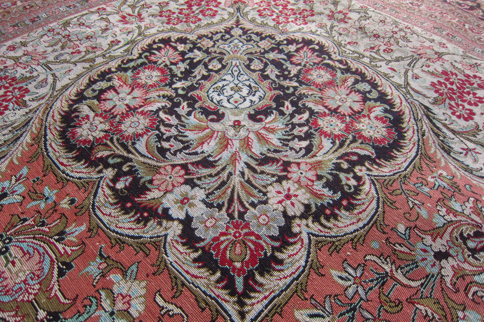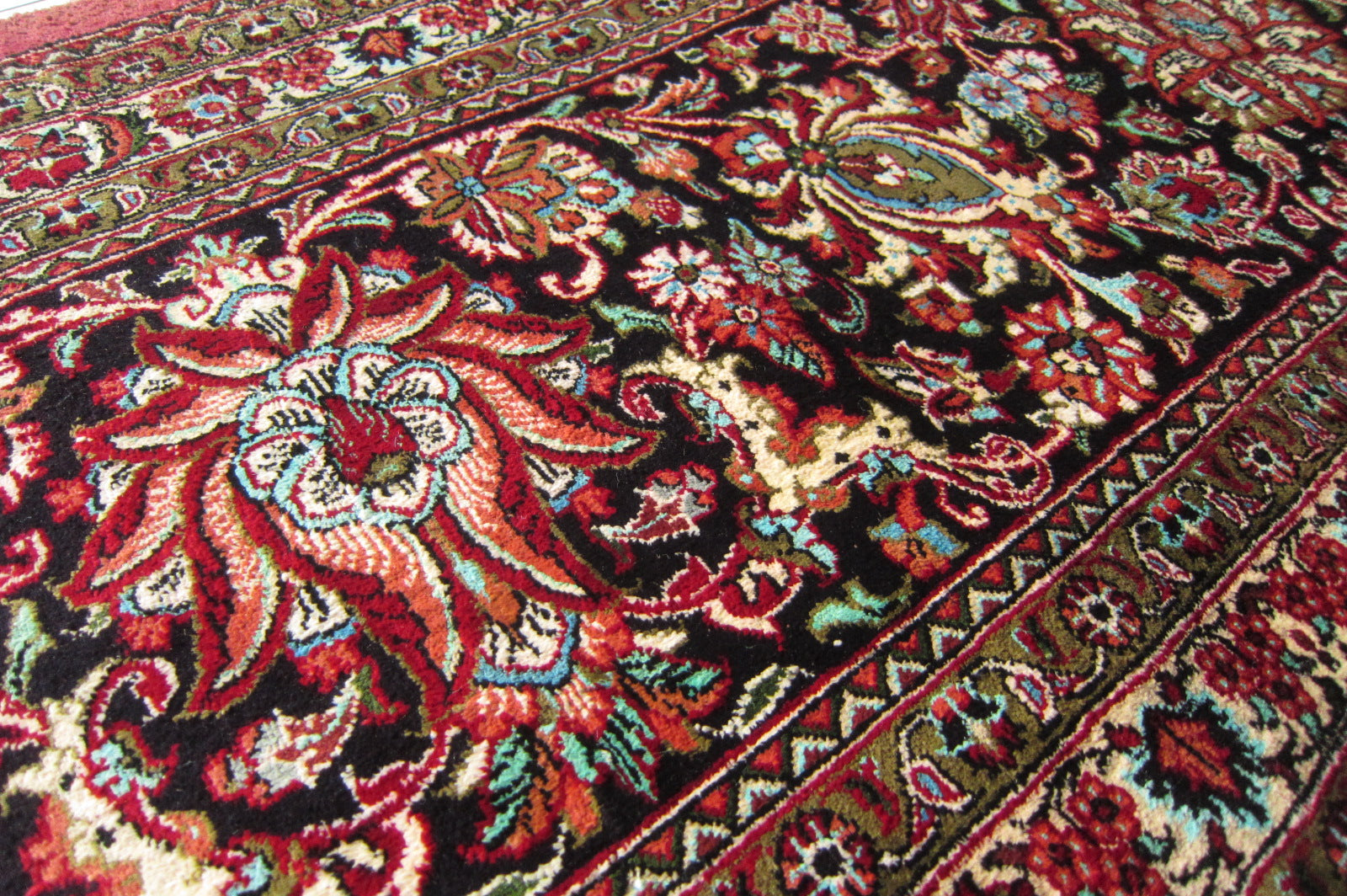 赤い地がゴージャスな絨毯です。リビングの広い範囲をカバーできます。
