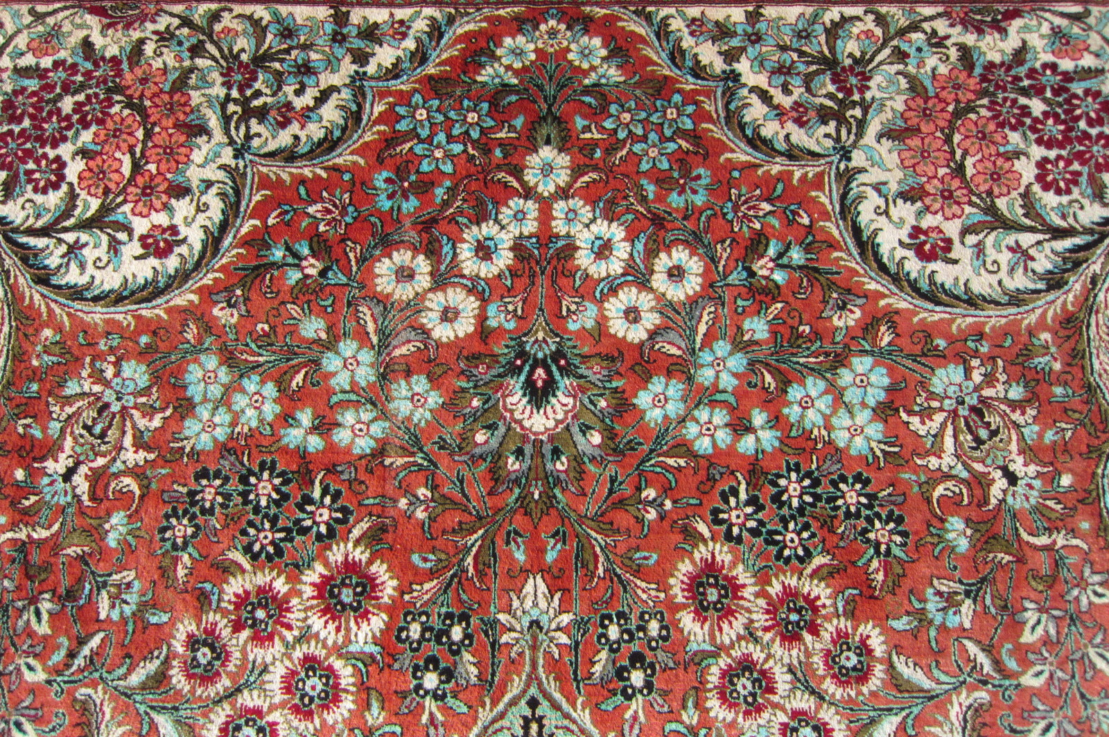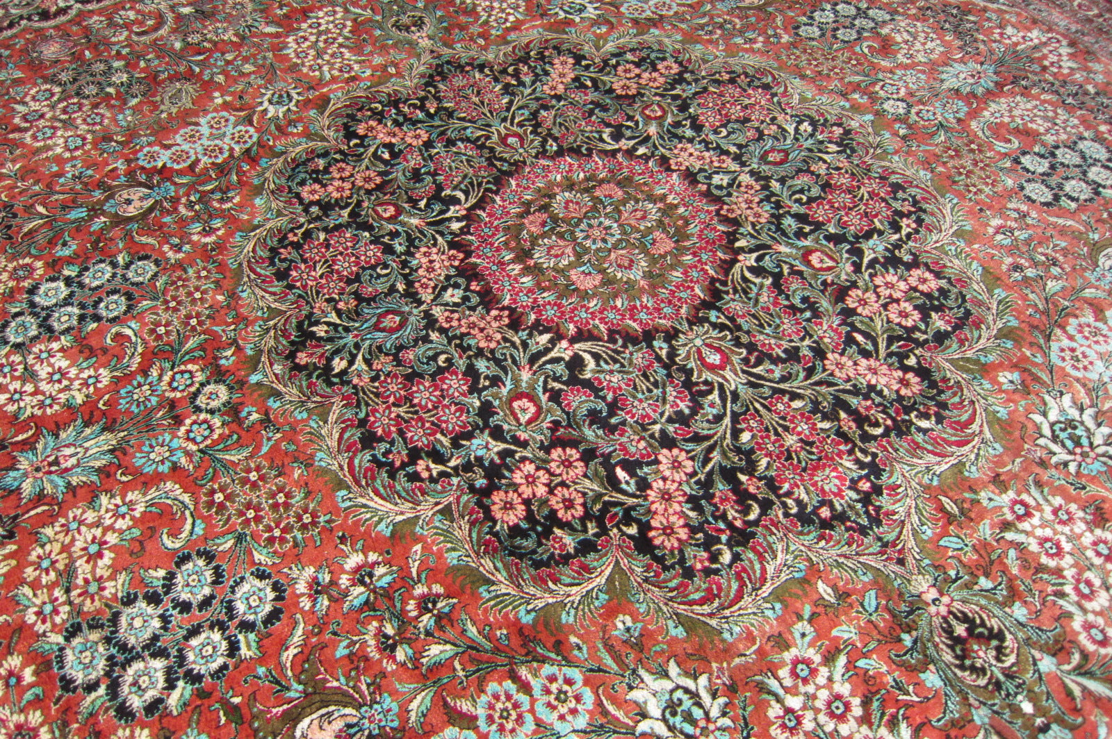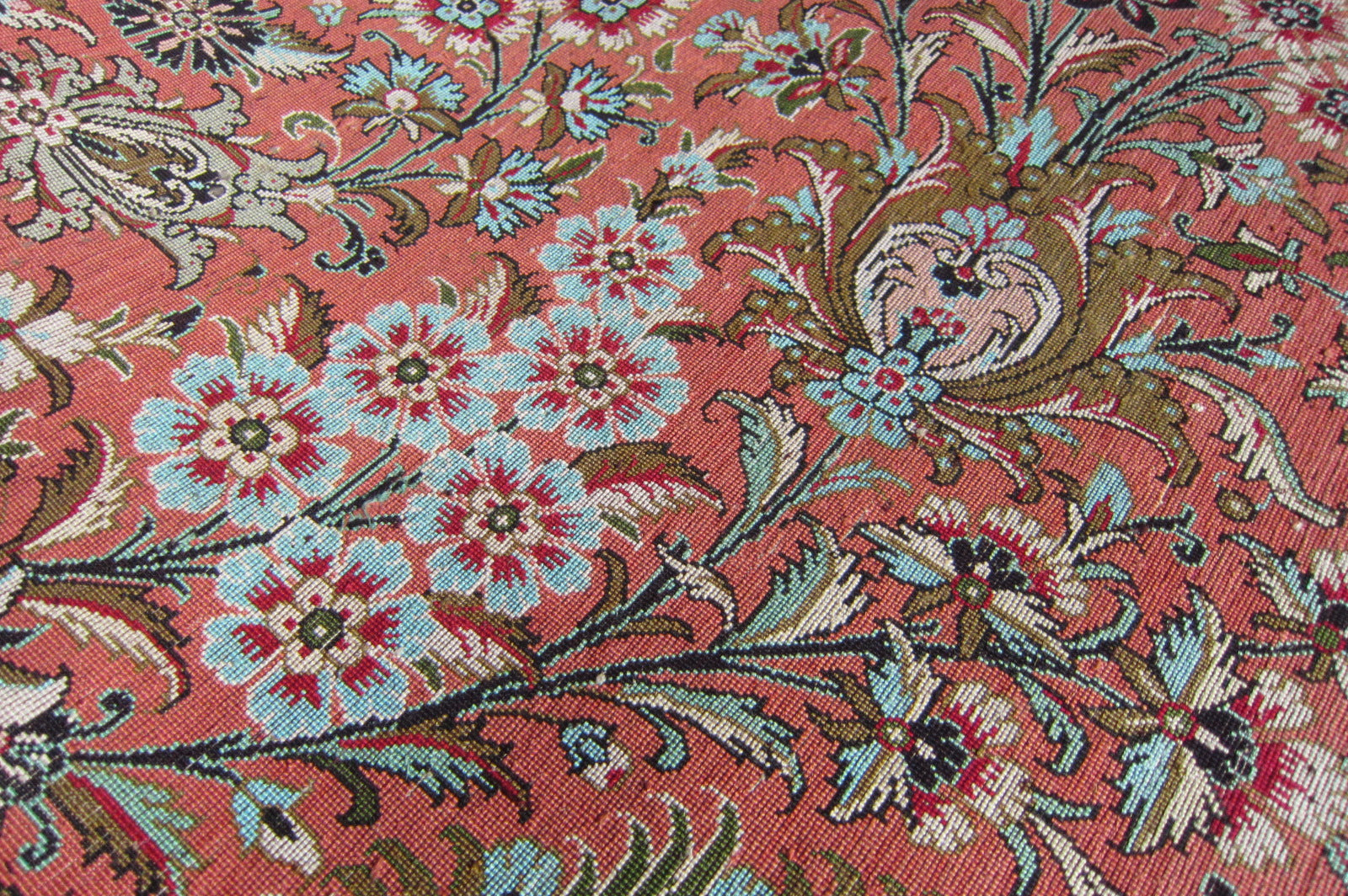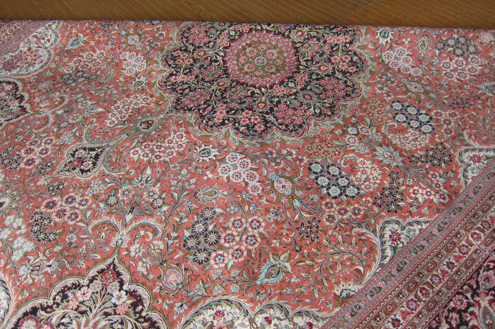 赤い地がゴージャスな絨毯です。リビングの広い範囲をカバーできます。
