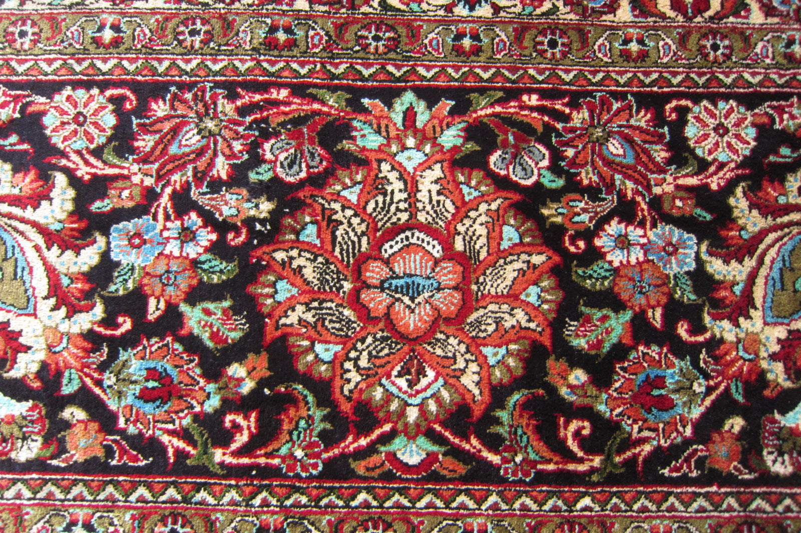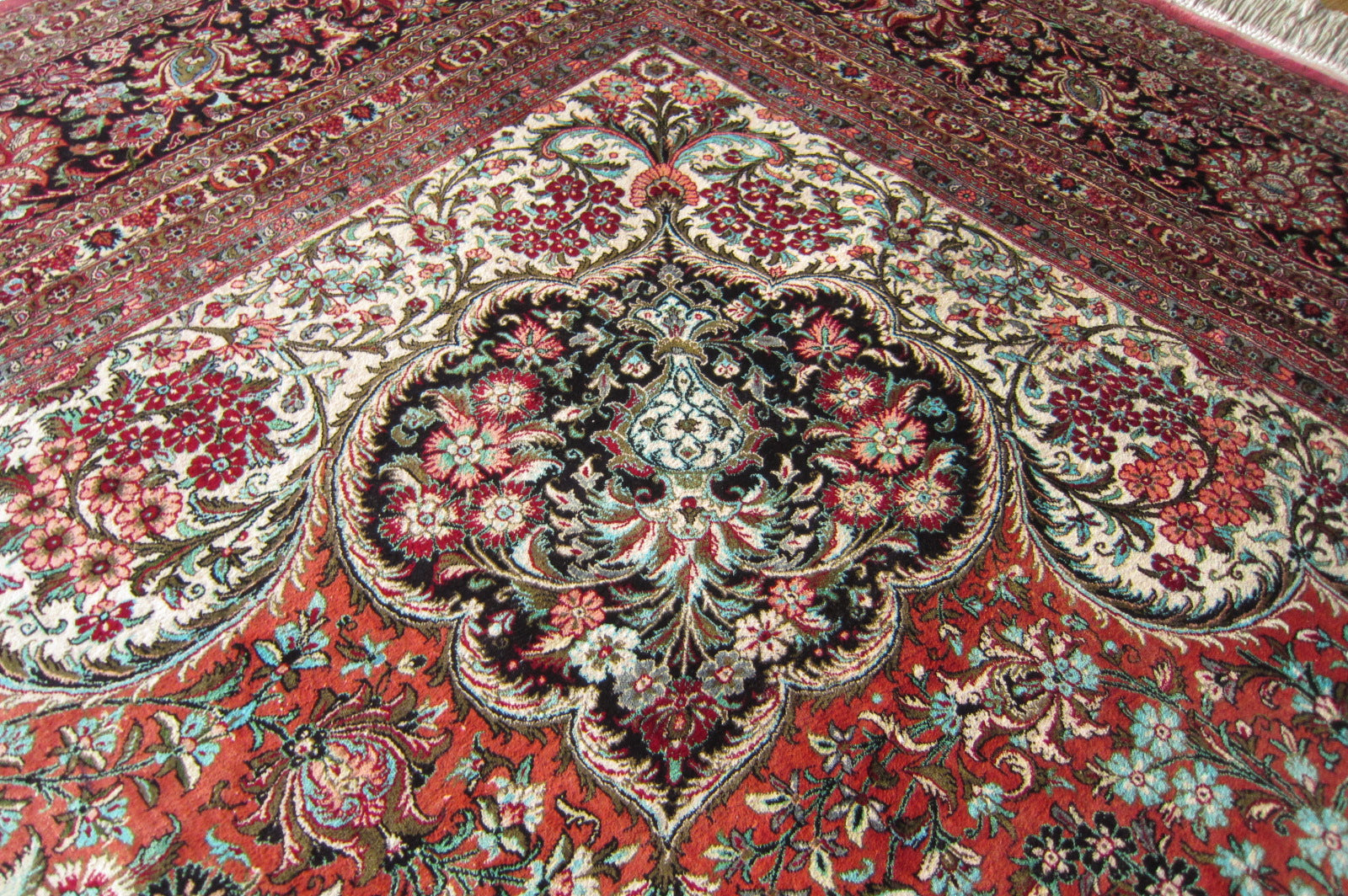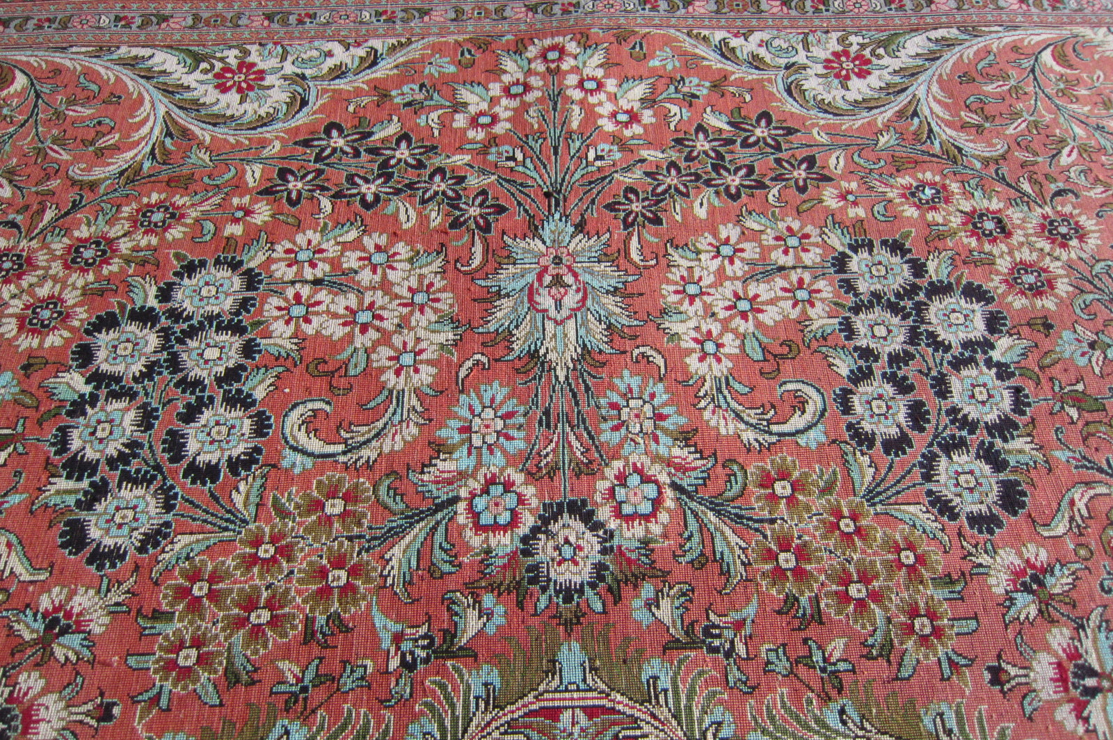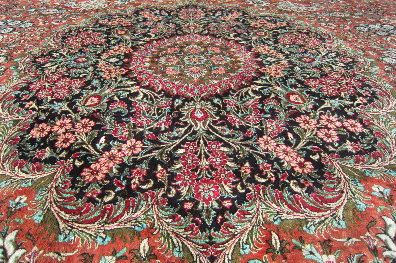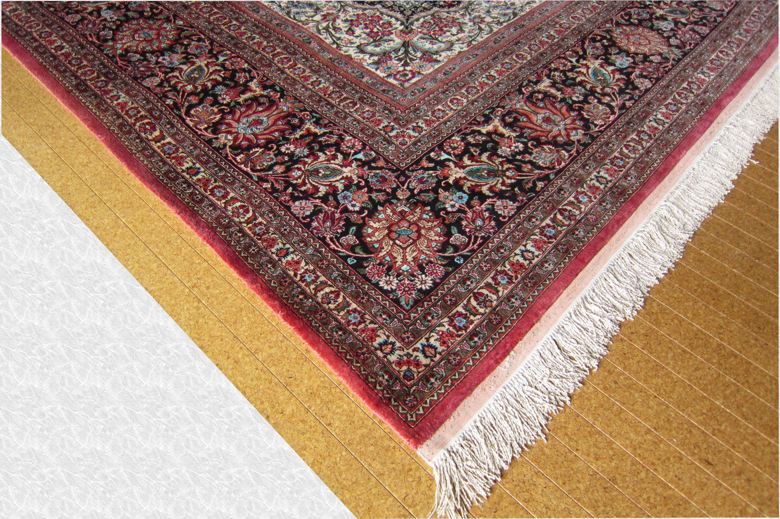 赤い地がゴージャスな絨毯です。リビングの広い範囲をカバーできます。