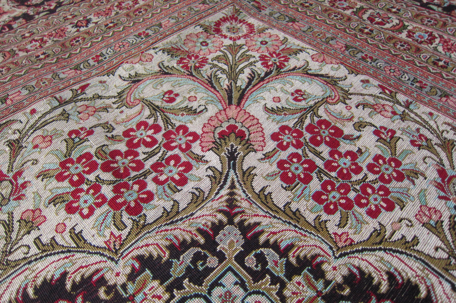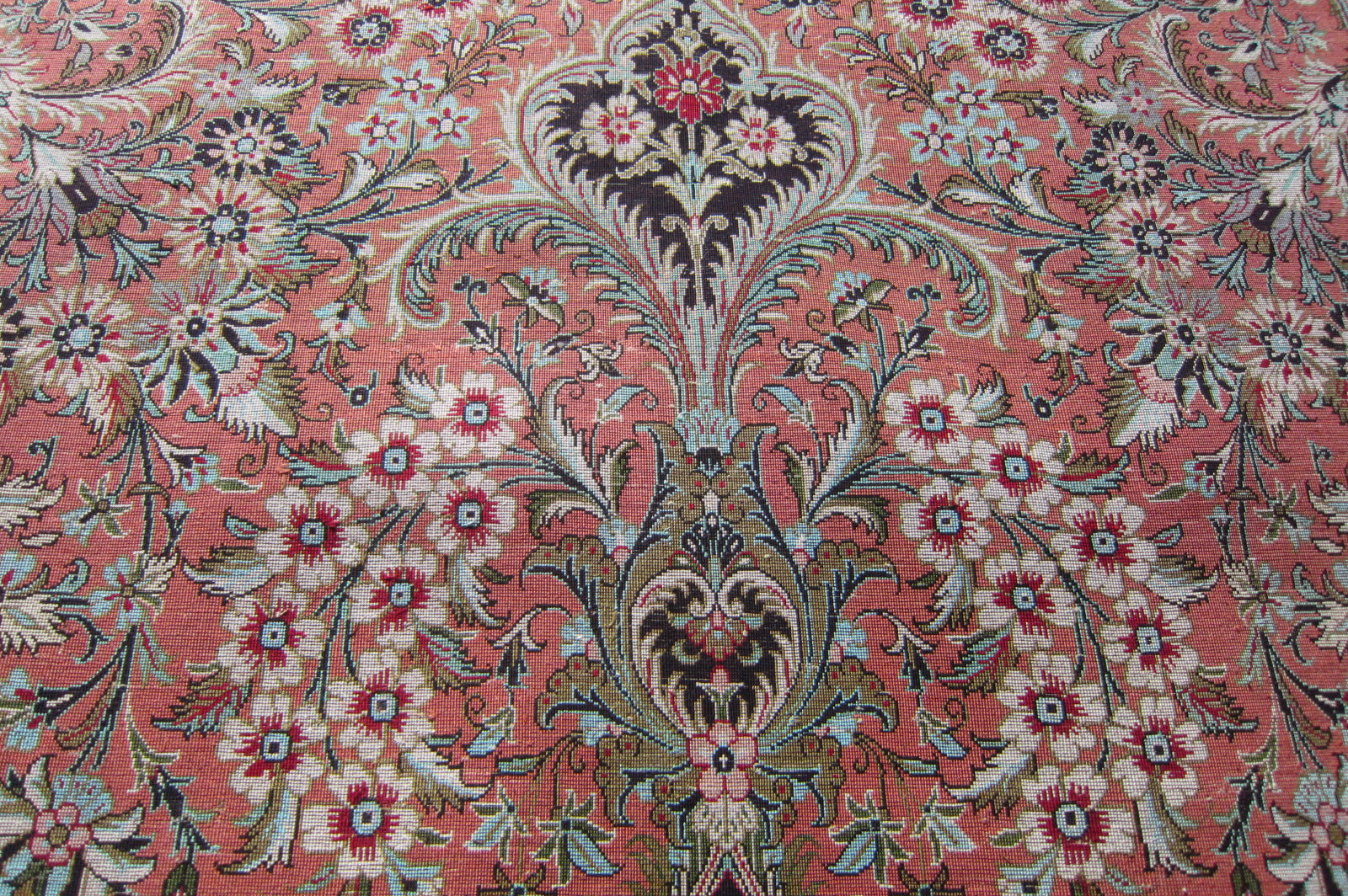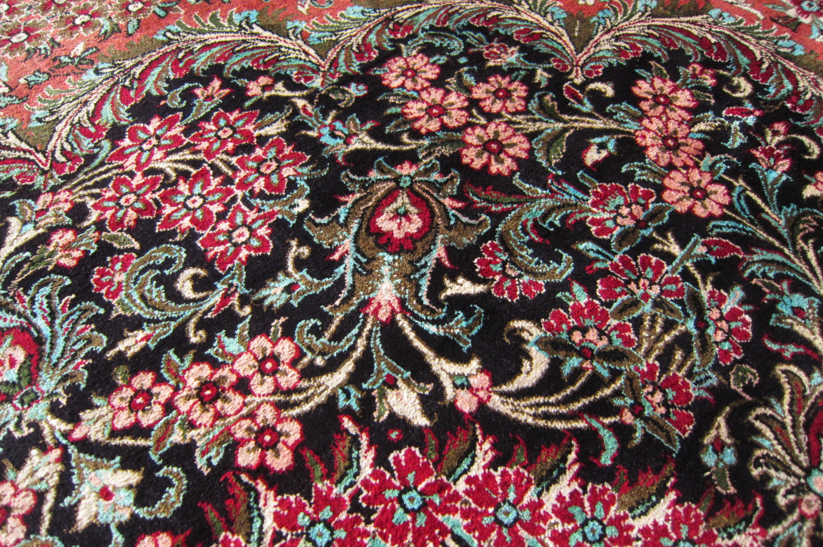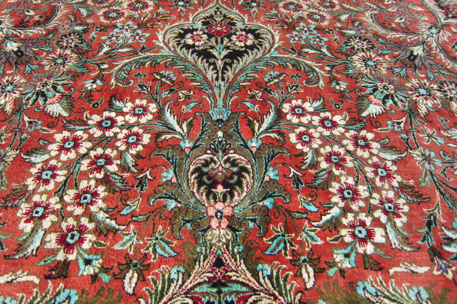 赤い地がゴージャスな絨毯です。リビングの広い範囲をカバーできます。