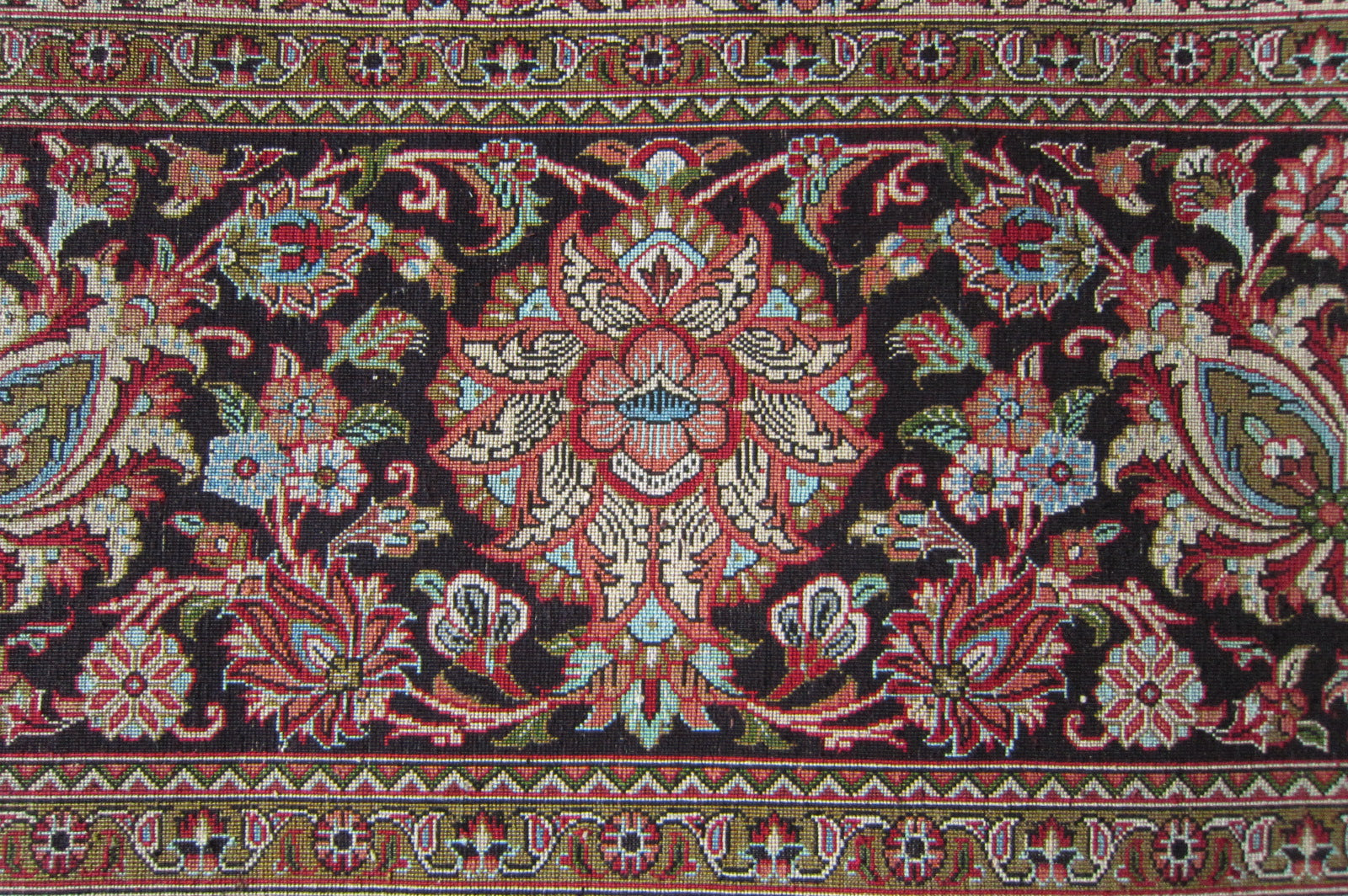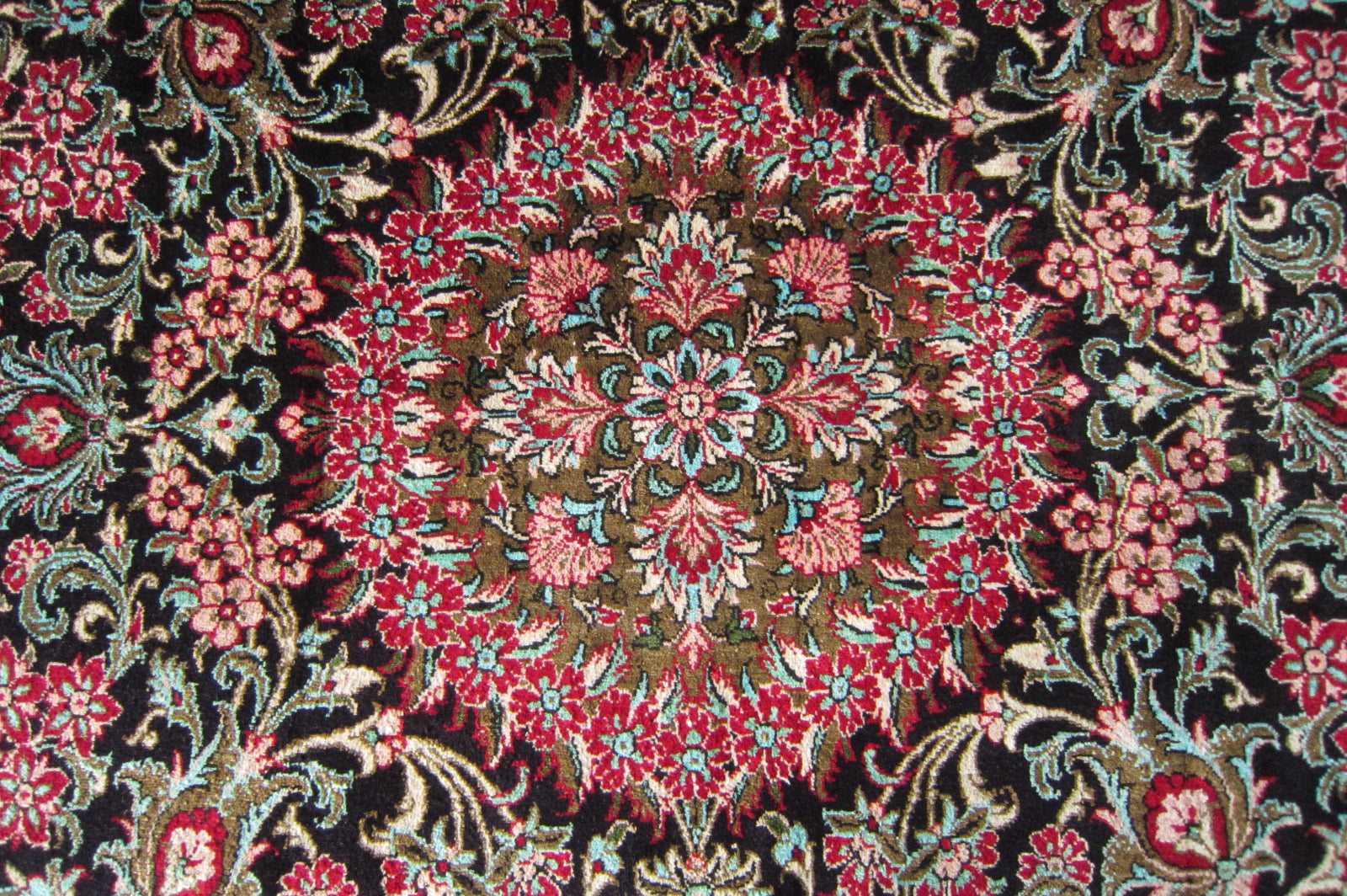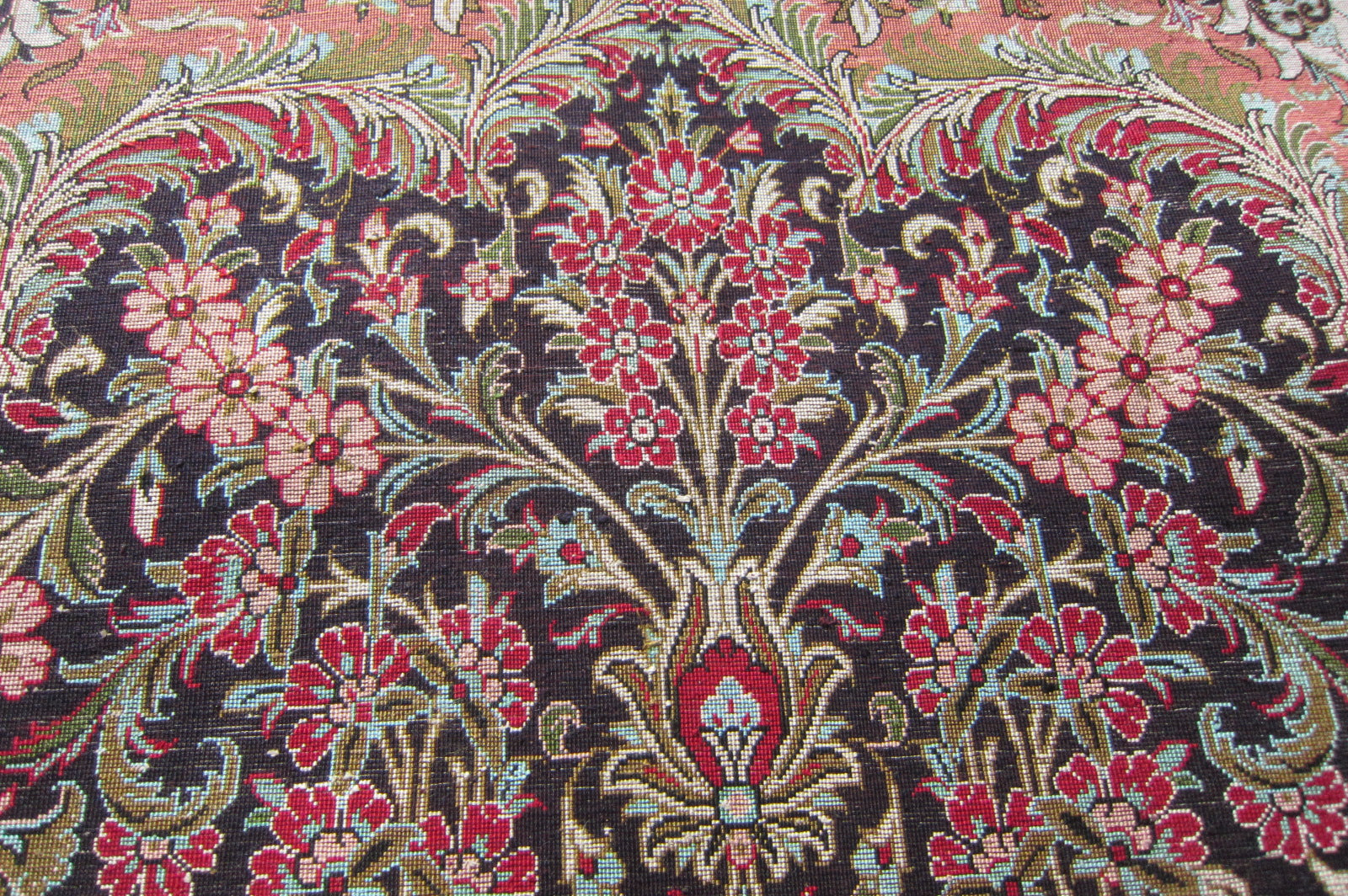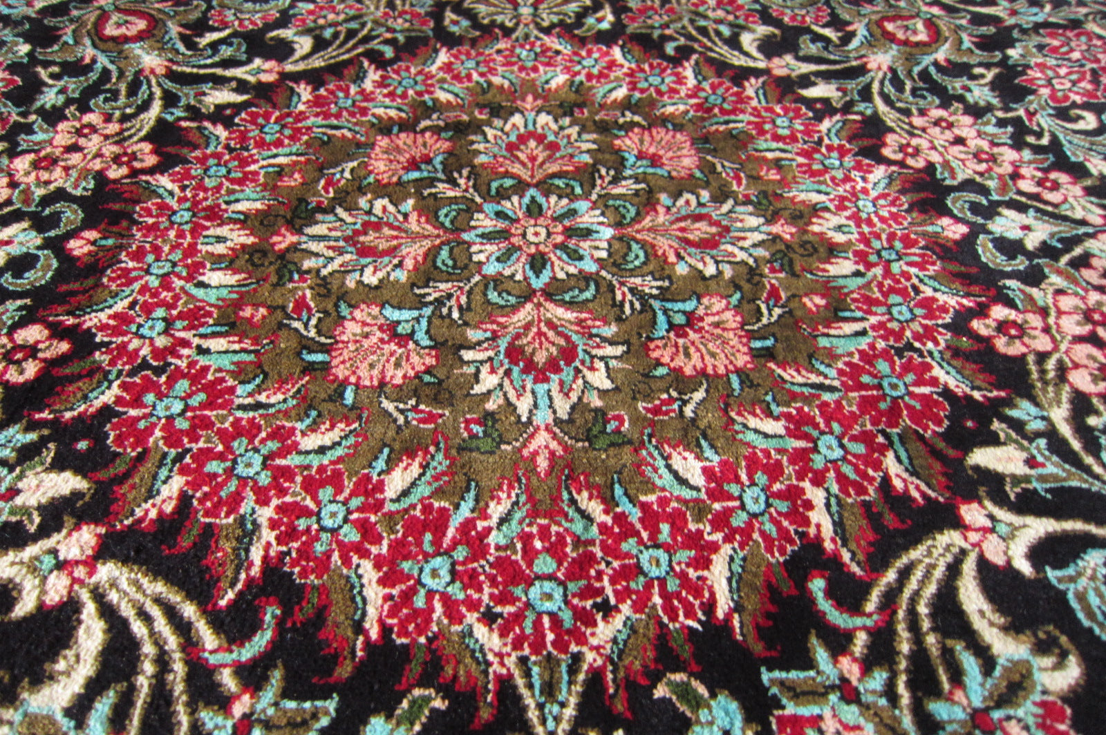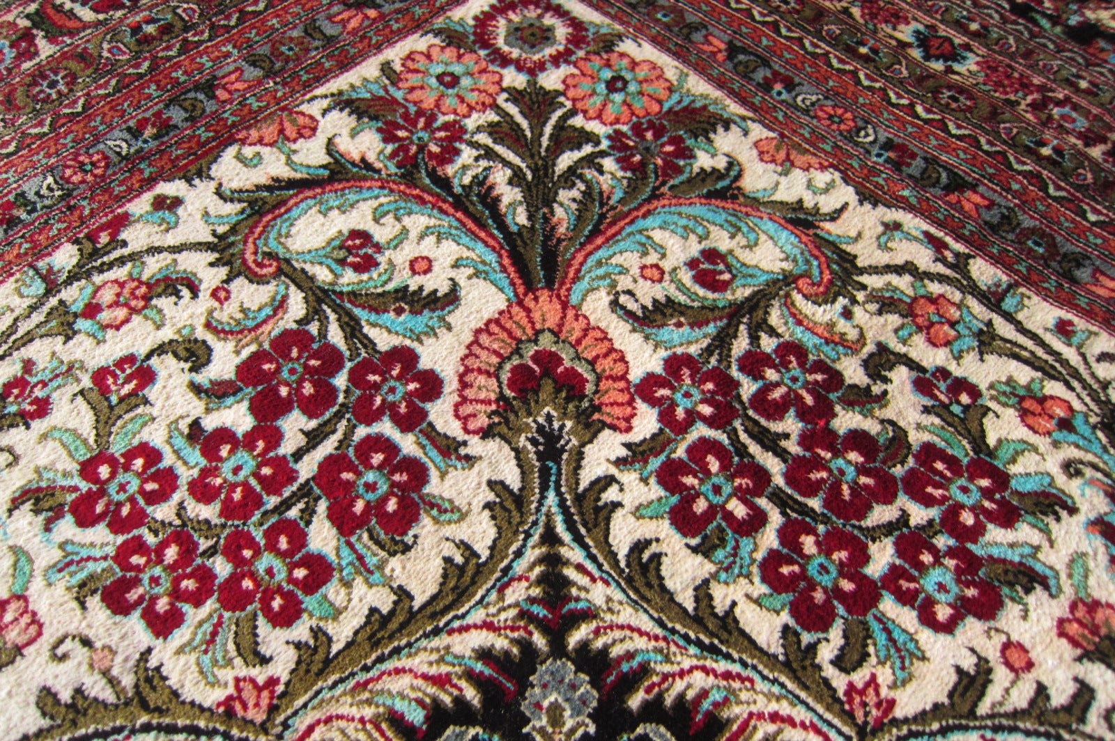 赤い地がゴージャスな絨毯です。リビングの広い範囲をカバーできます。