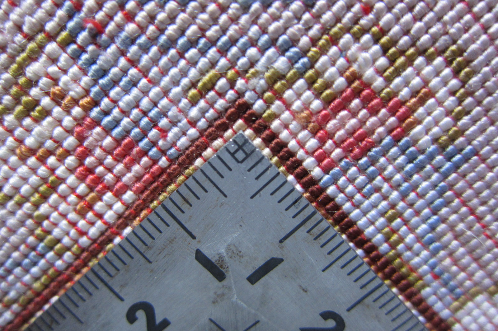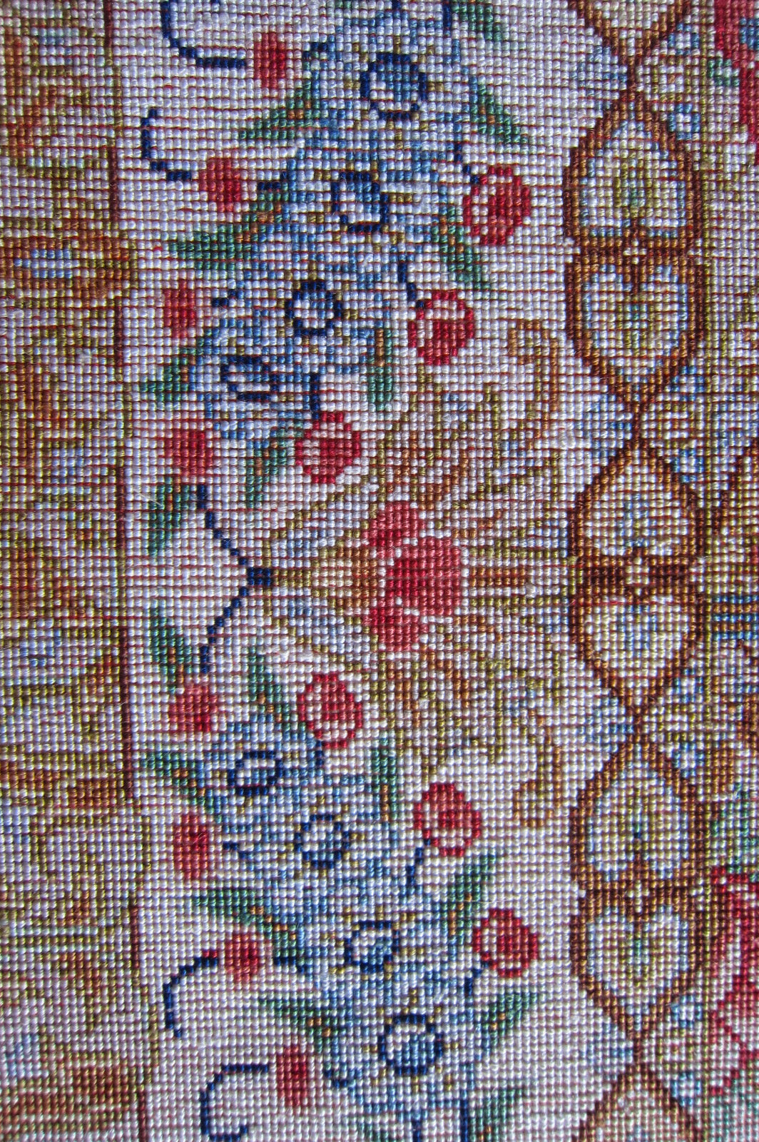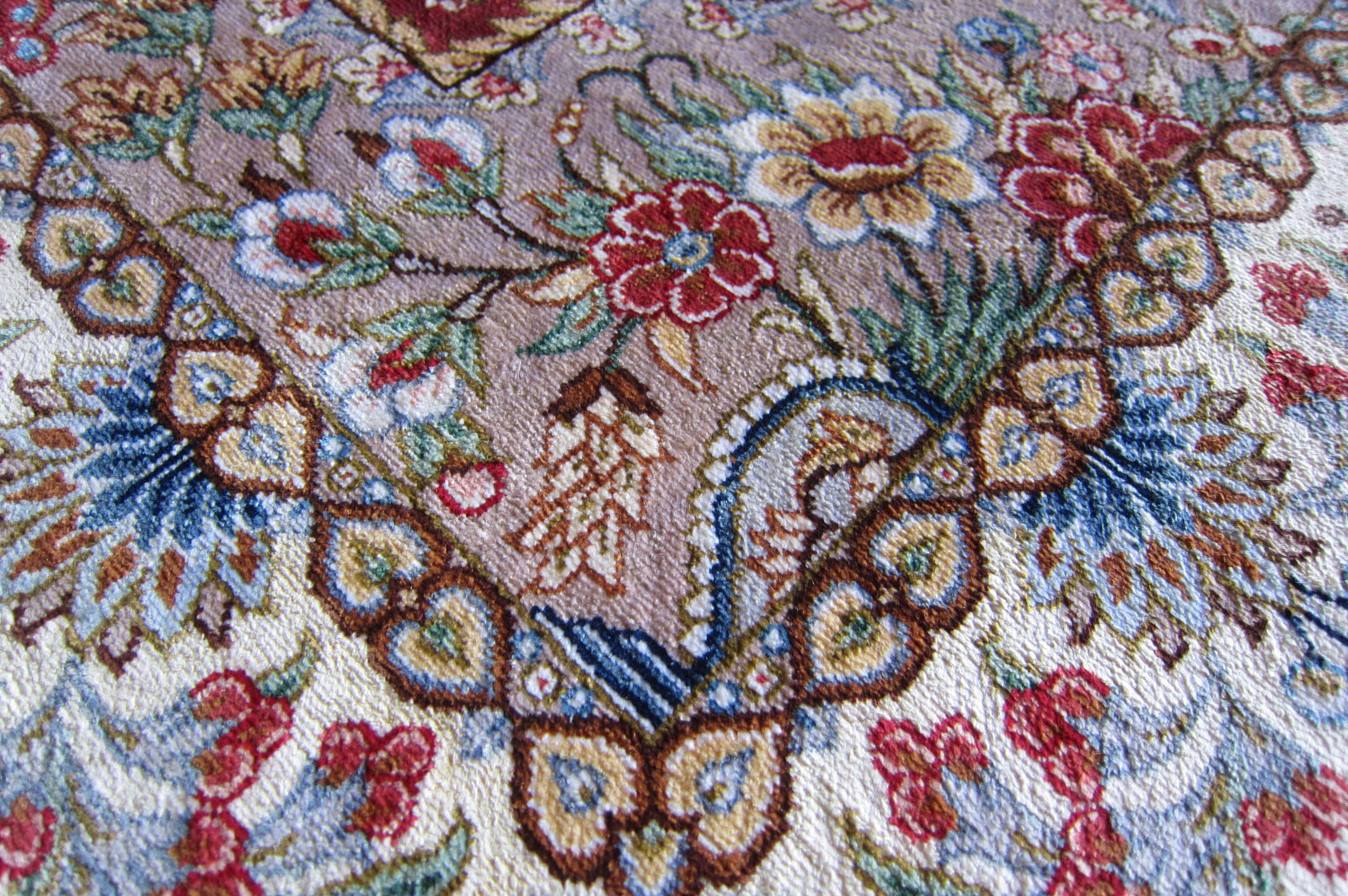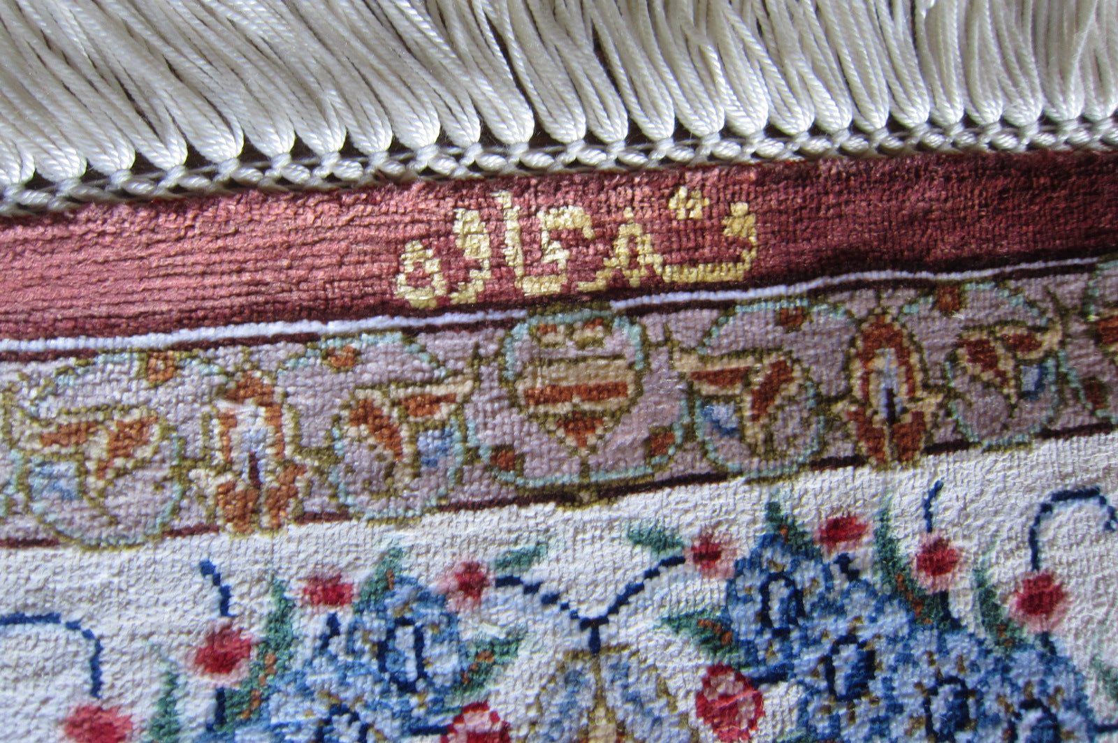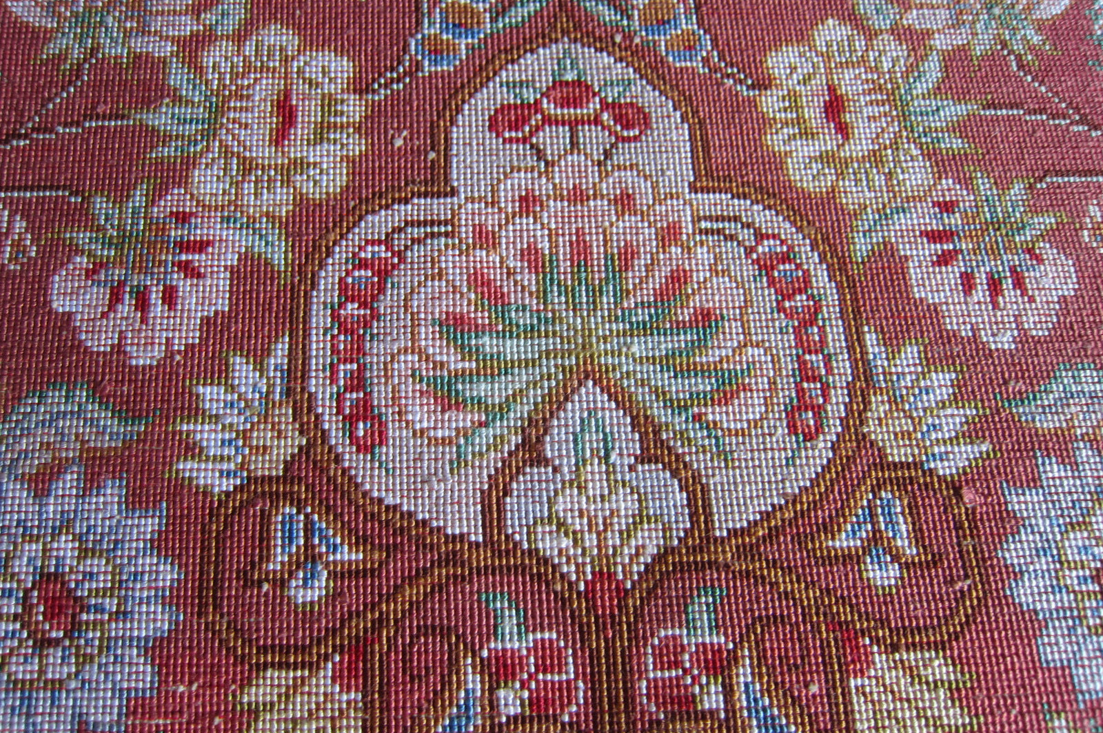 赤と青の花に囲まれたメダリオンが美しい絨毯です。