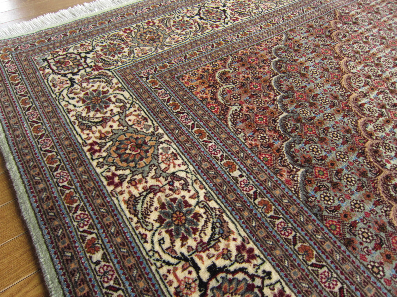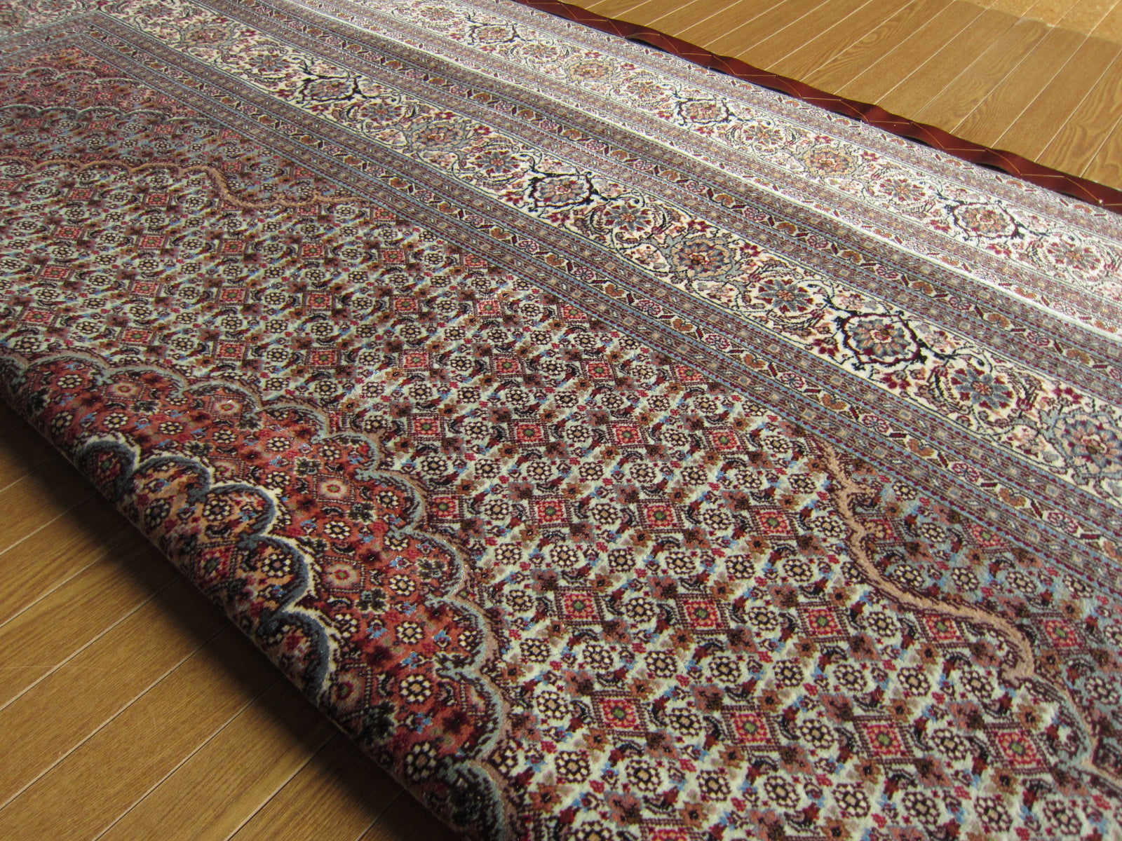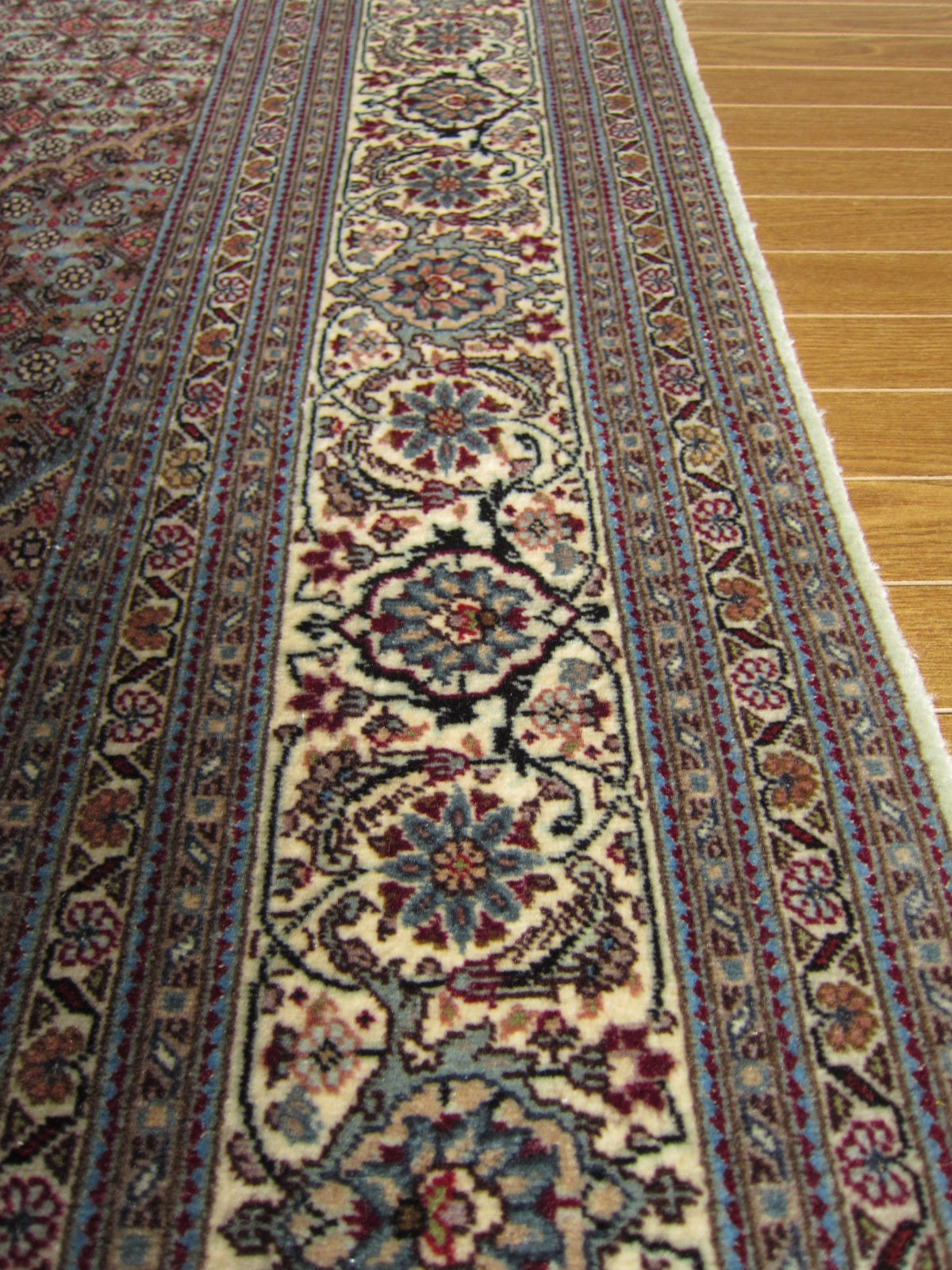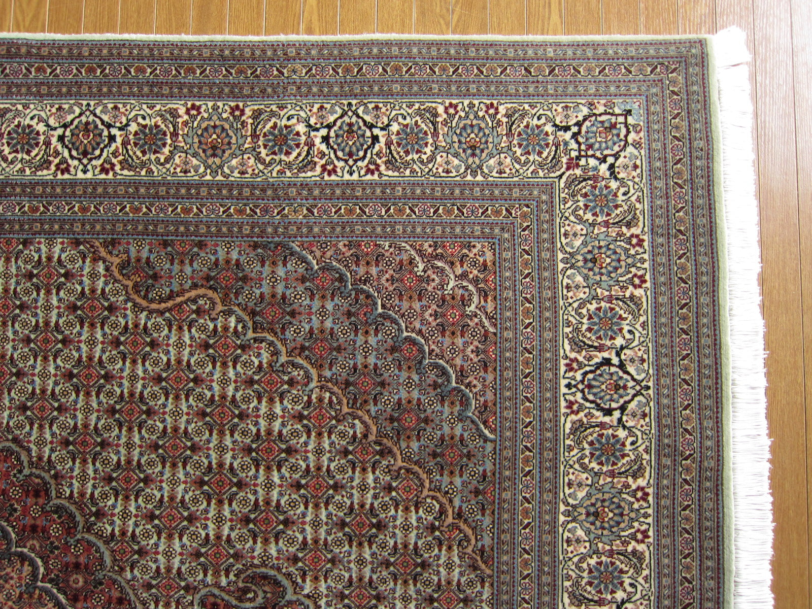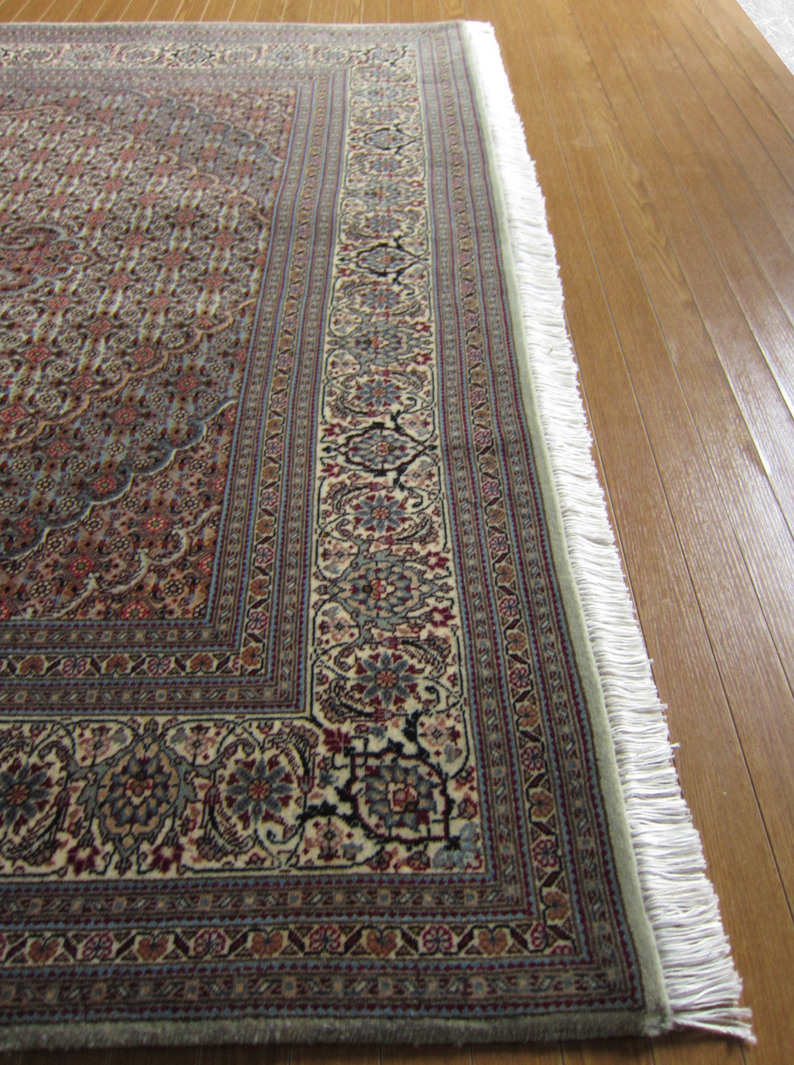 マーヒー文様の詰まったデザインでありつつ、落ち着きのある色合いの絨毯です。