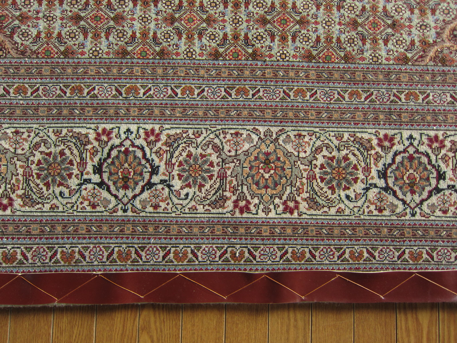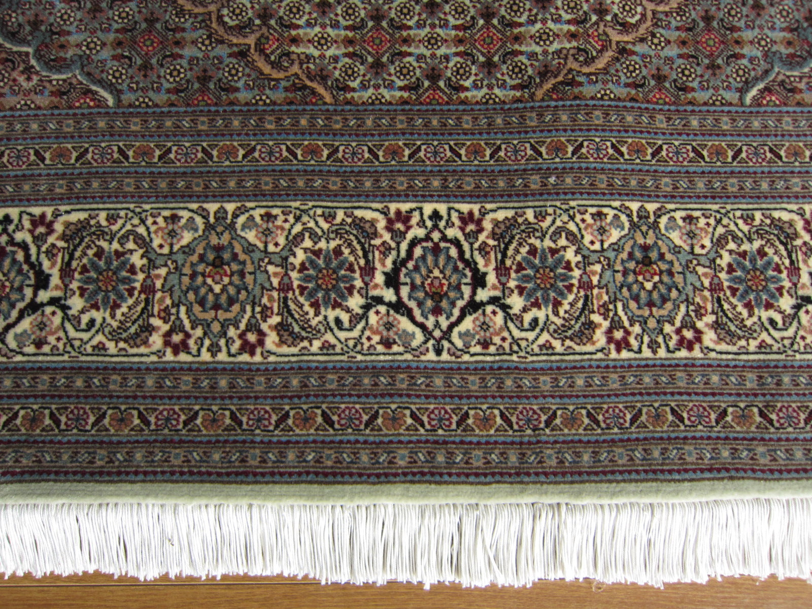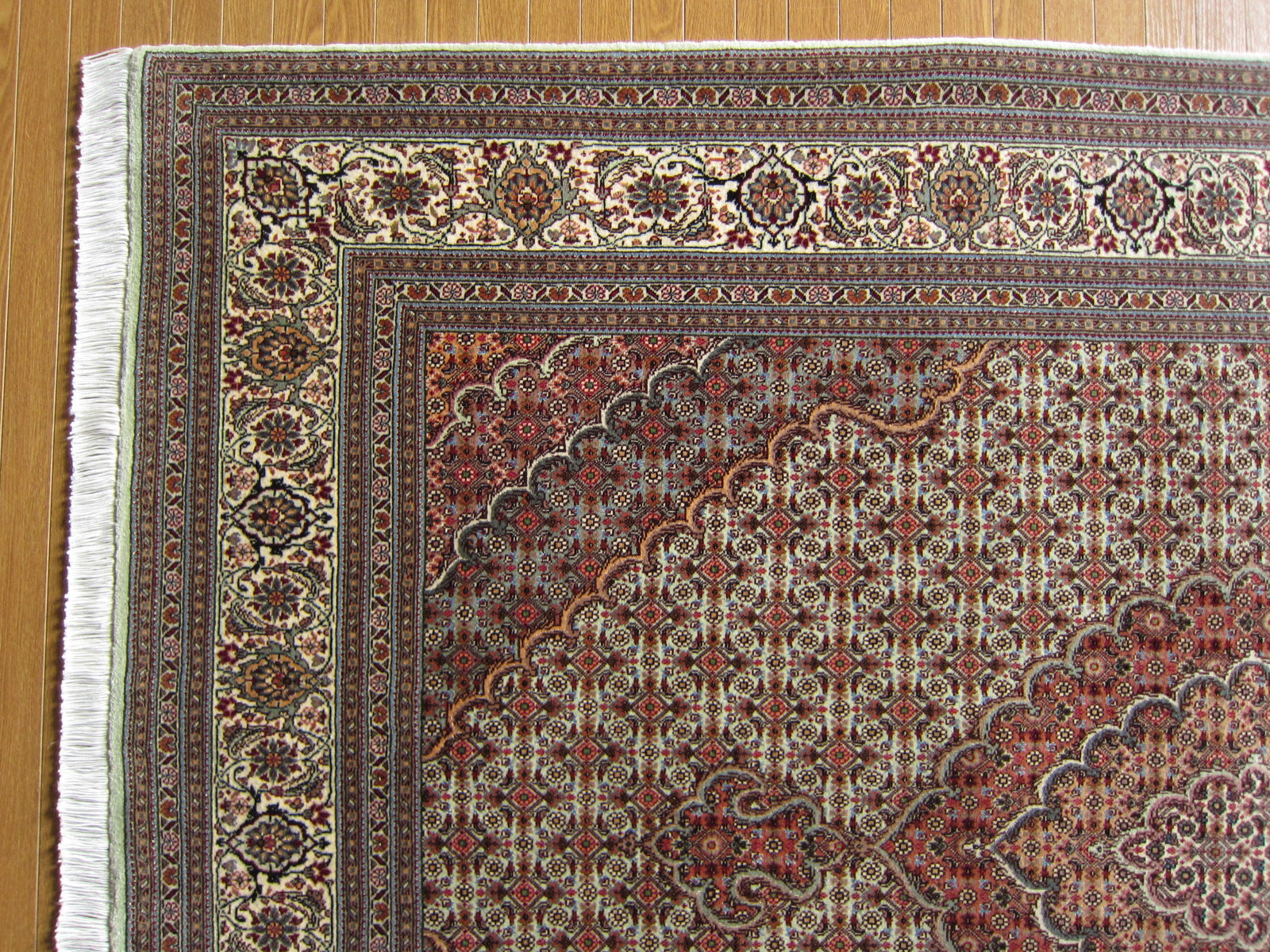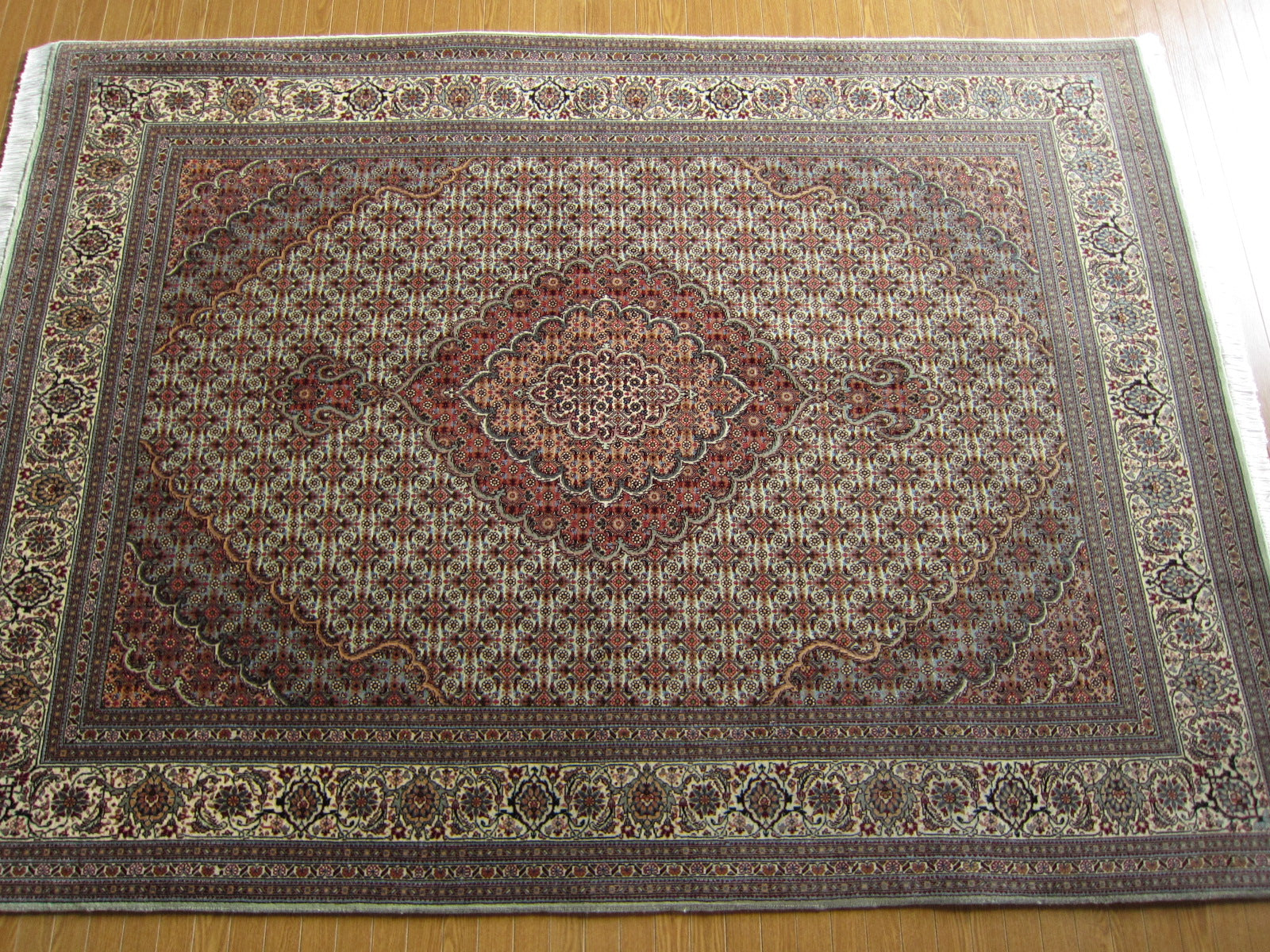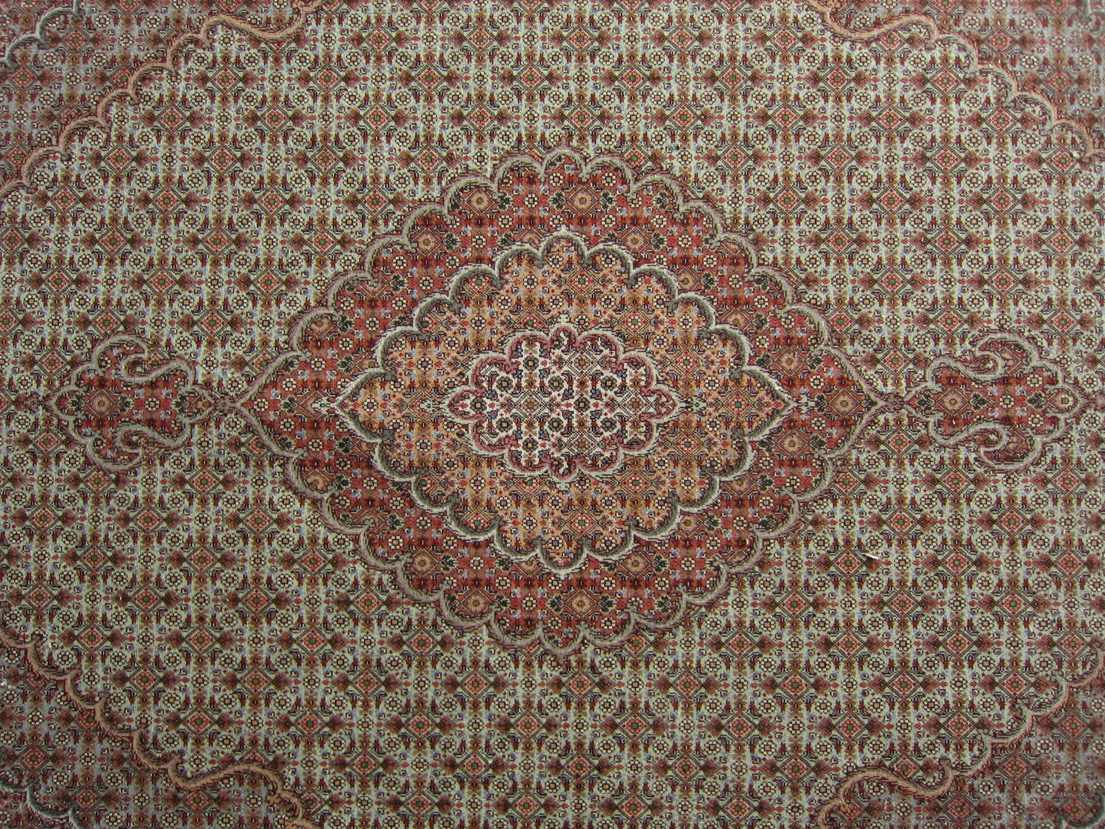 マーヒー文様の詰まったデザインでありつつ、落ち着きのある色合いの絨毯です。