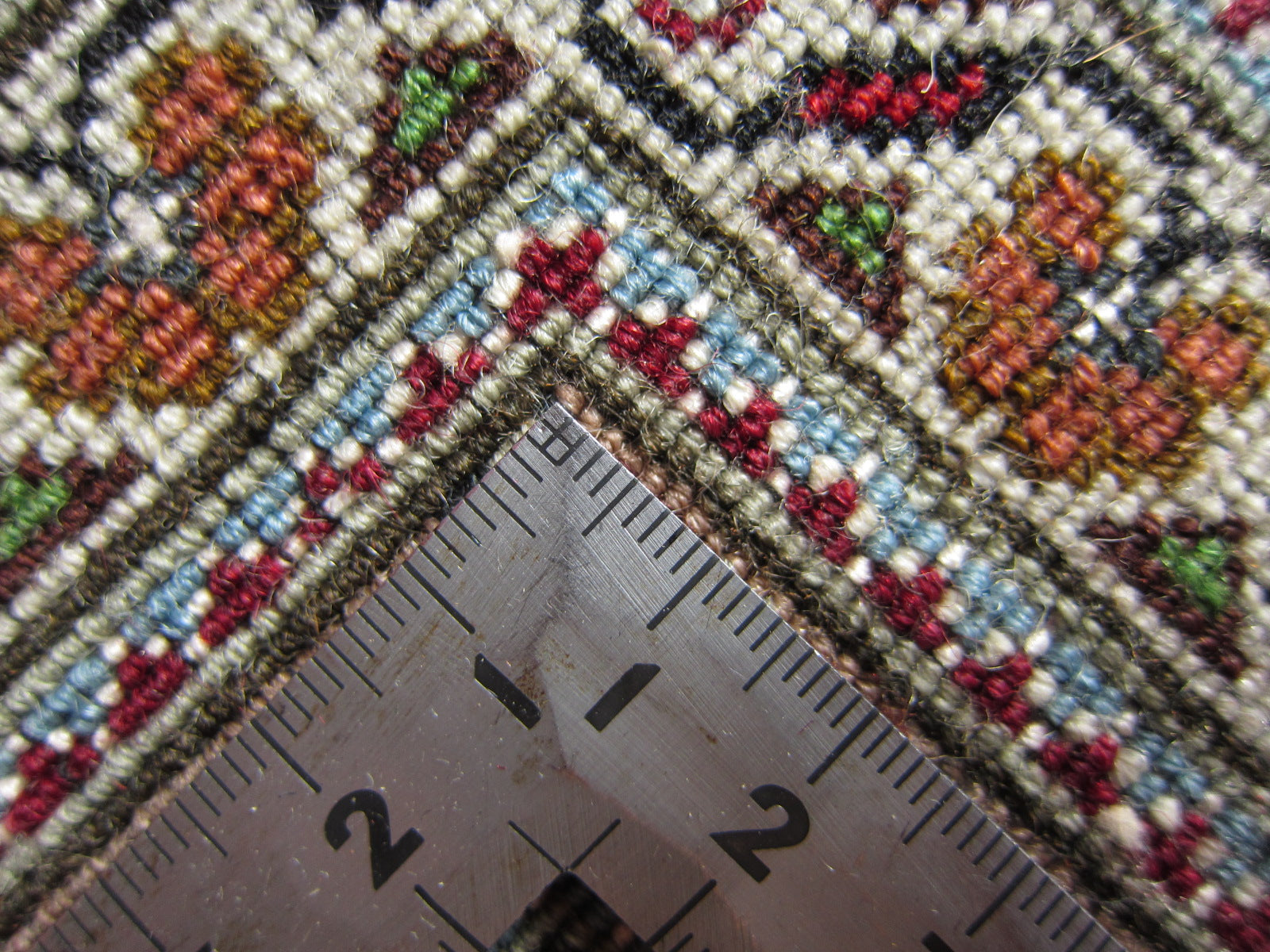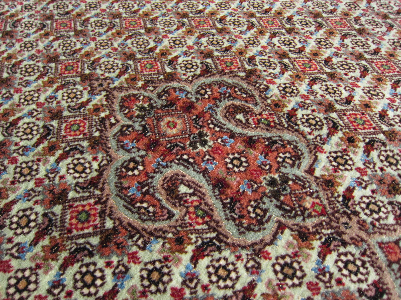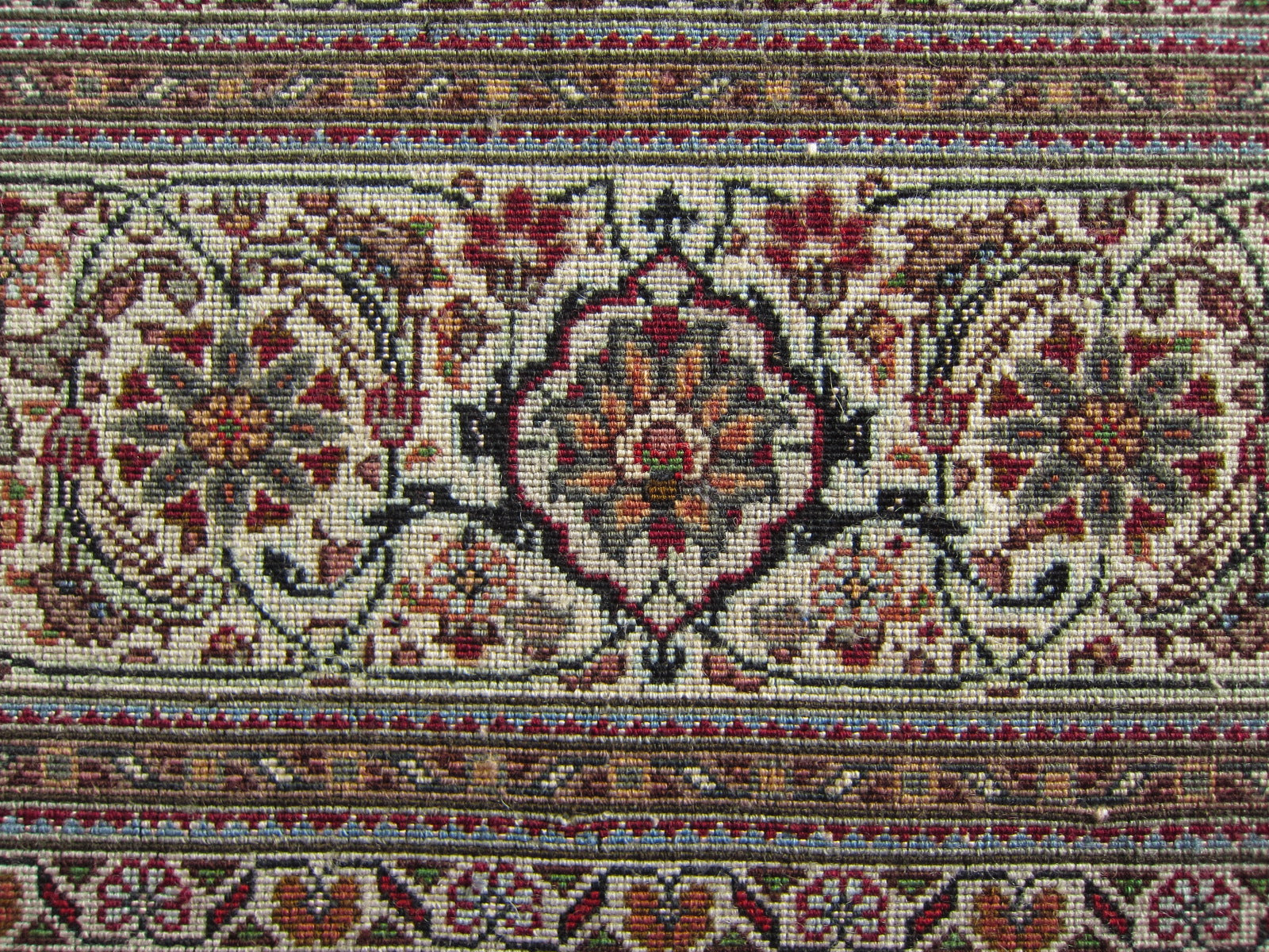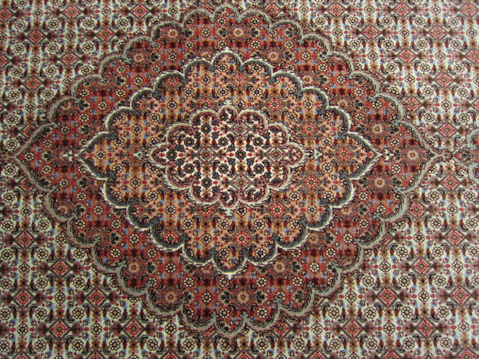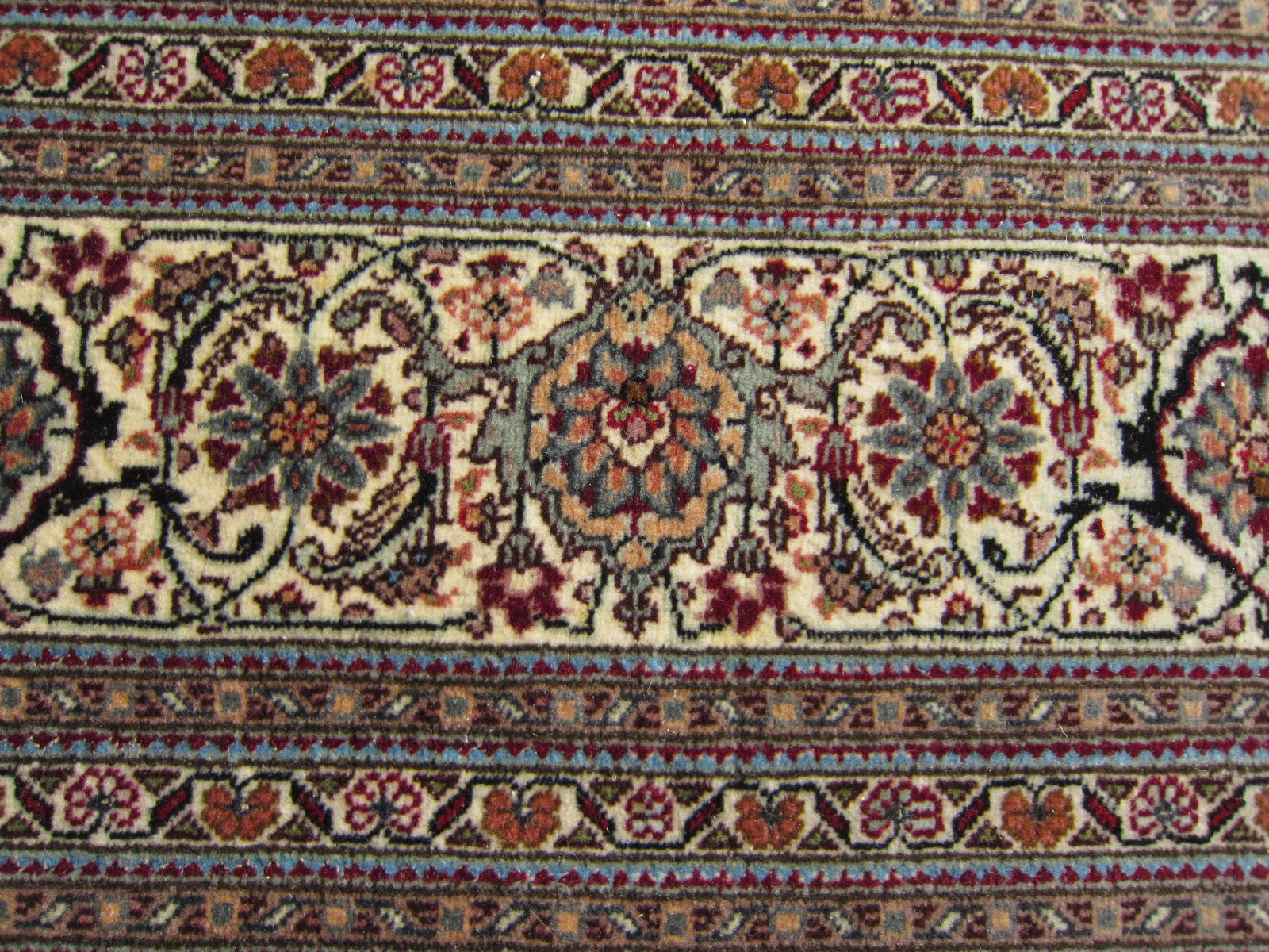 マーヒー文様の詰まったデザインでありつつ、落ち着きのある色合いの絨毯です。