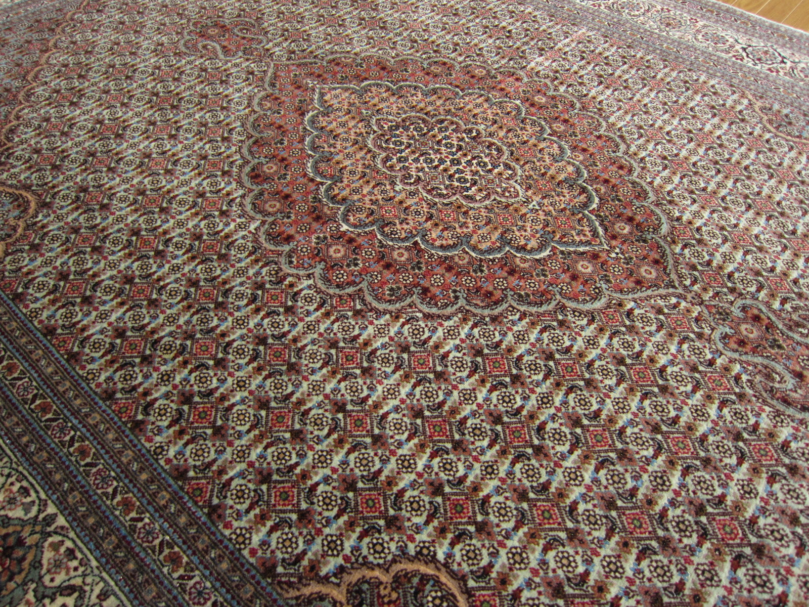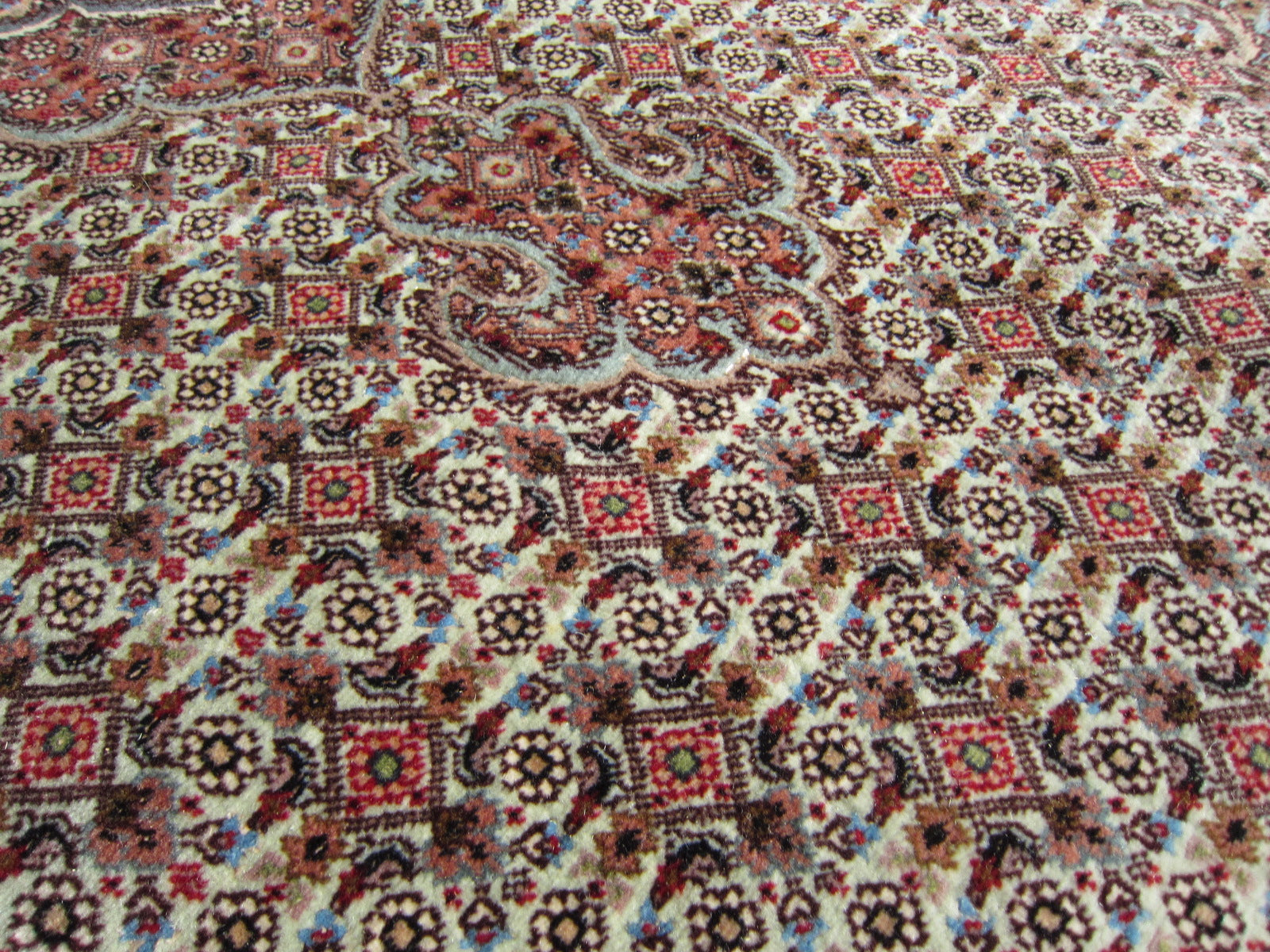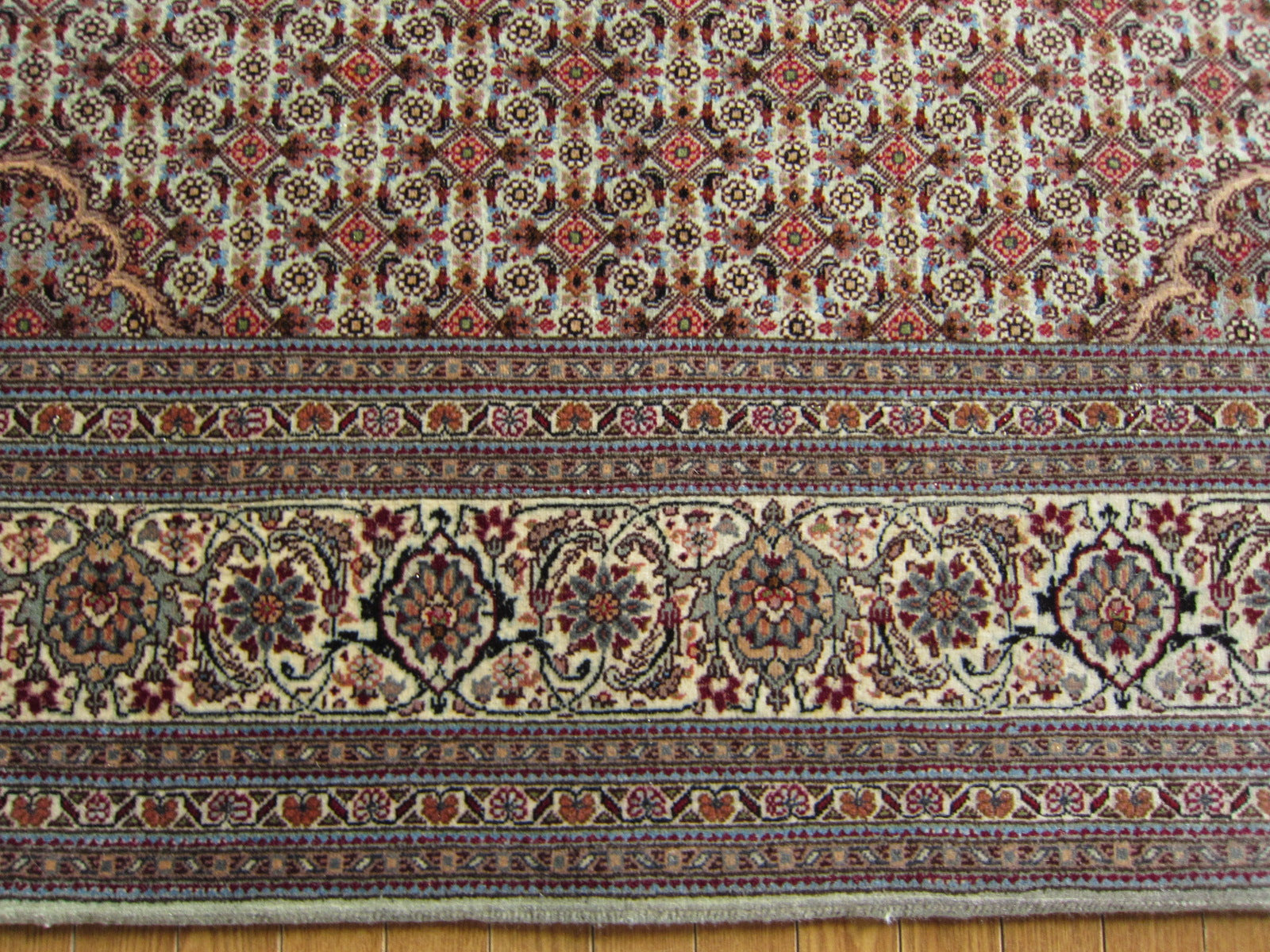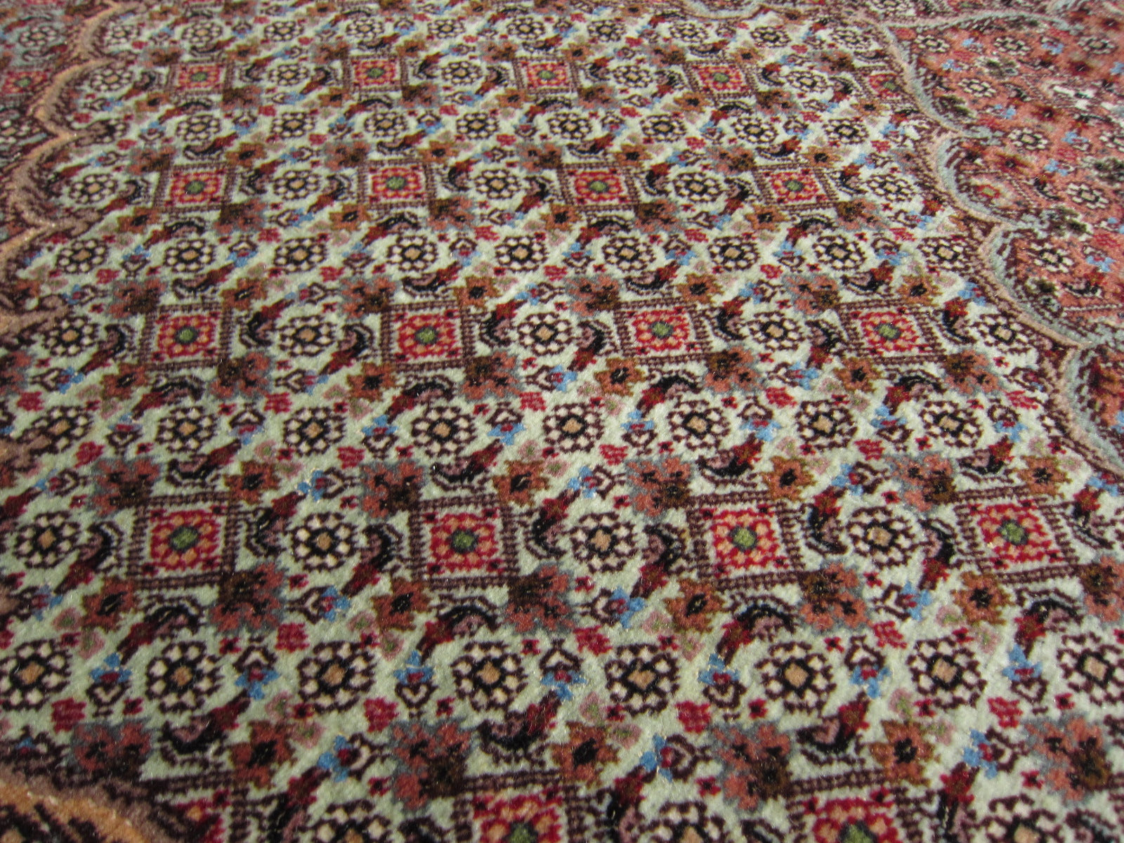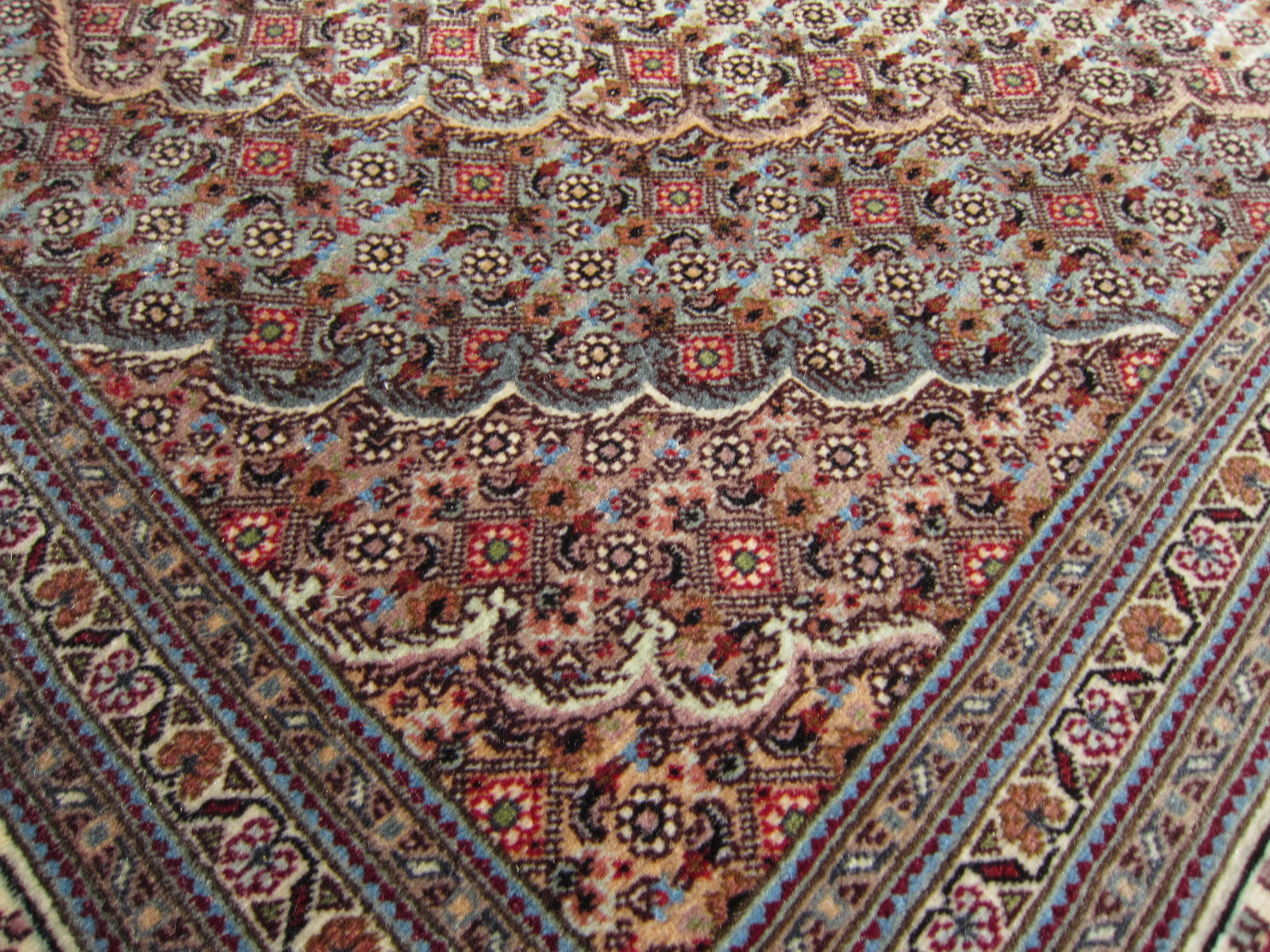 マーヒー文様の詰まったデザインでありつつ、落ち着きのある色合いの絨毯です。
